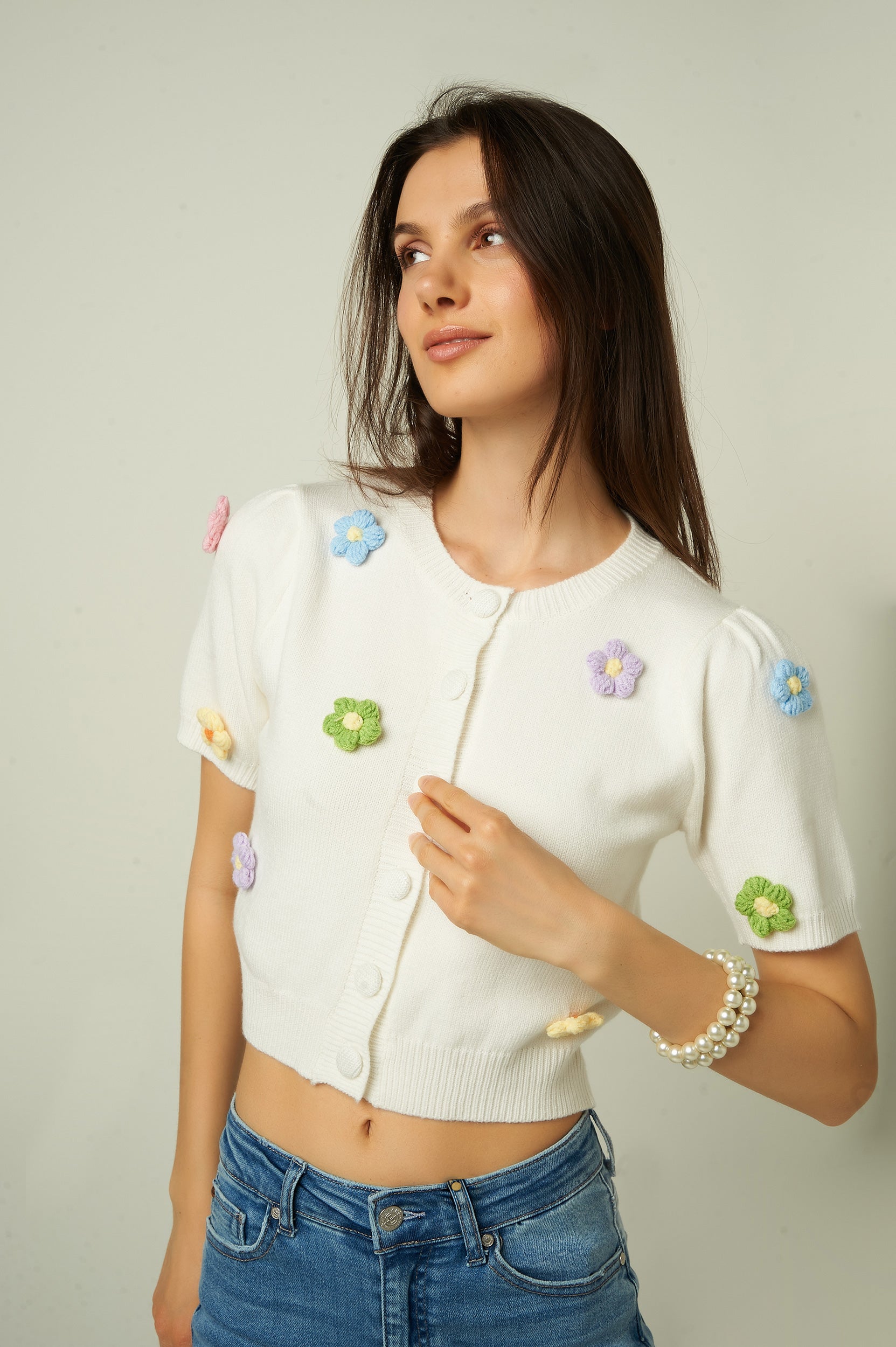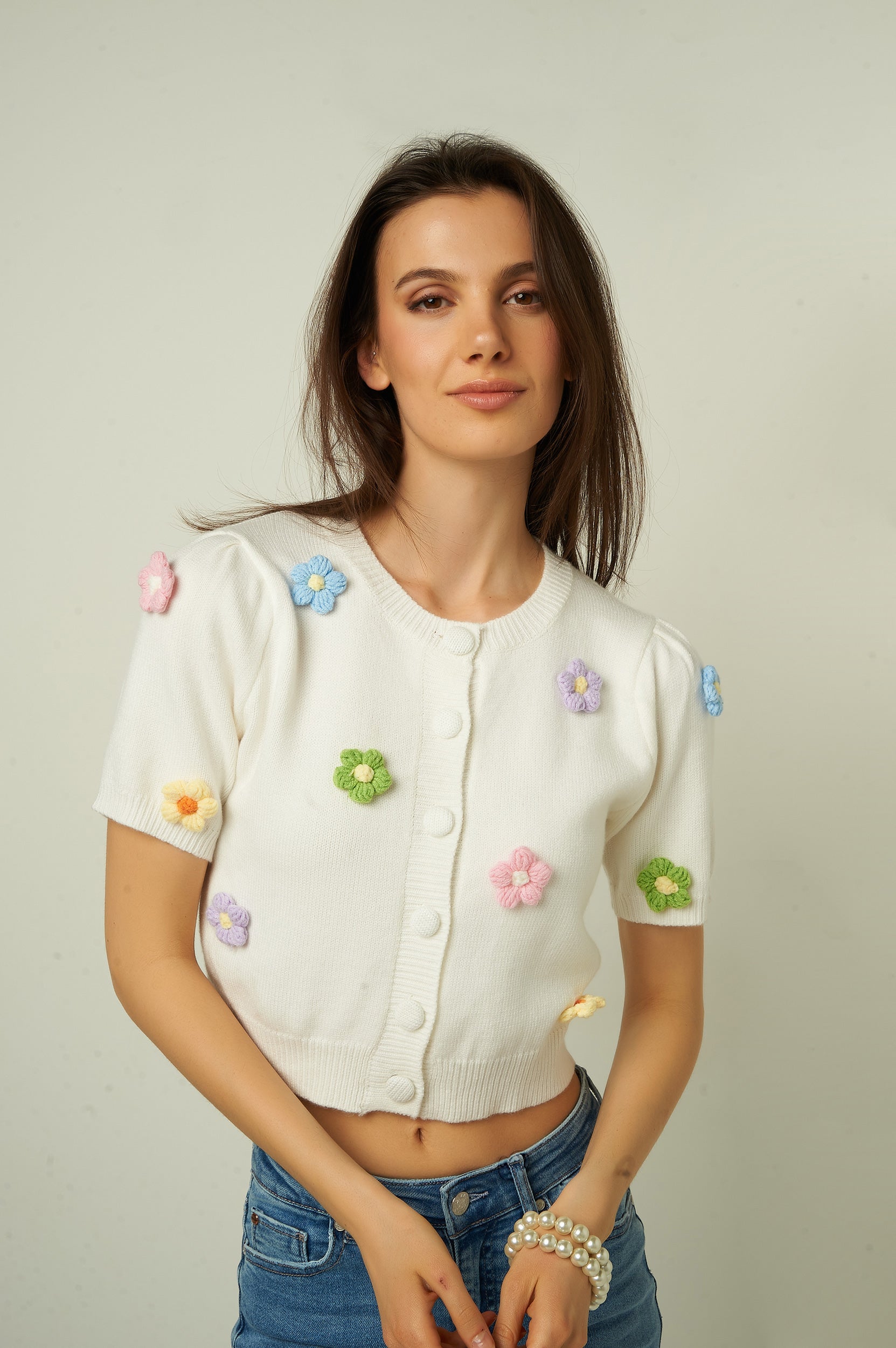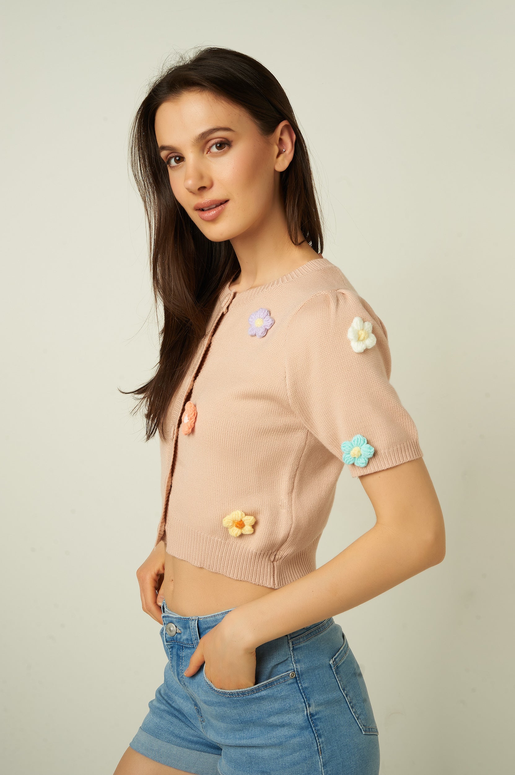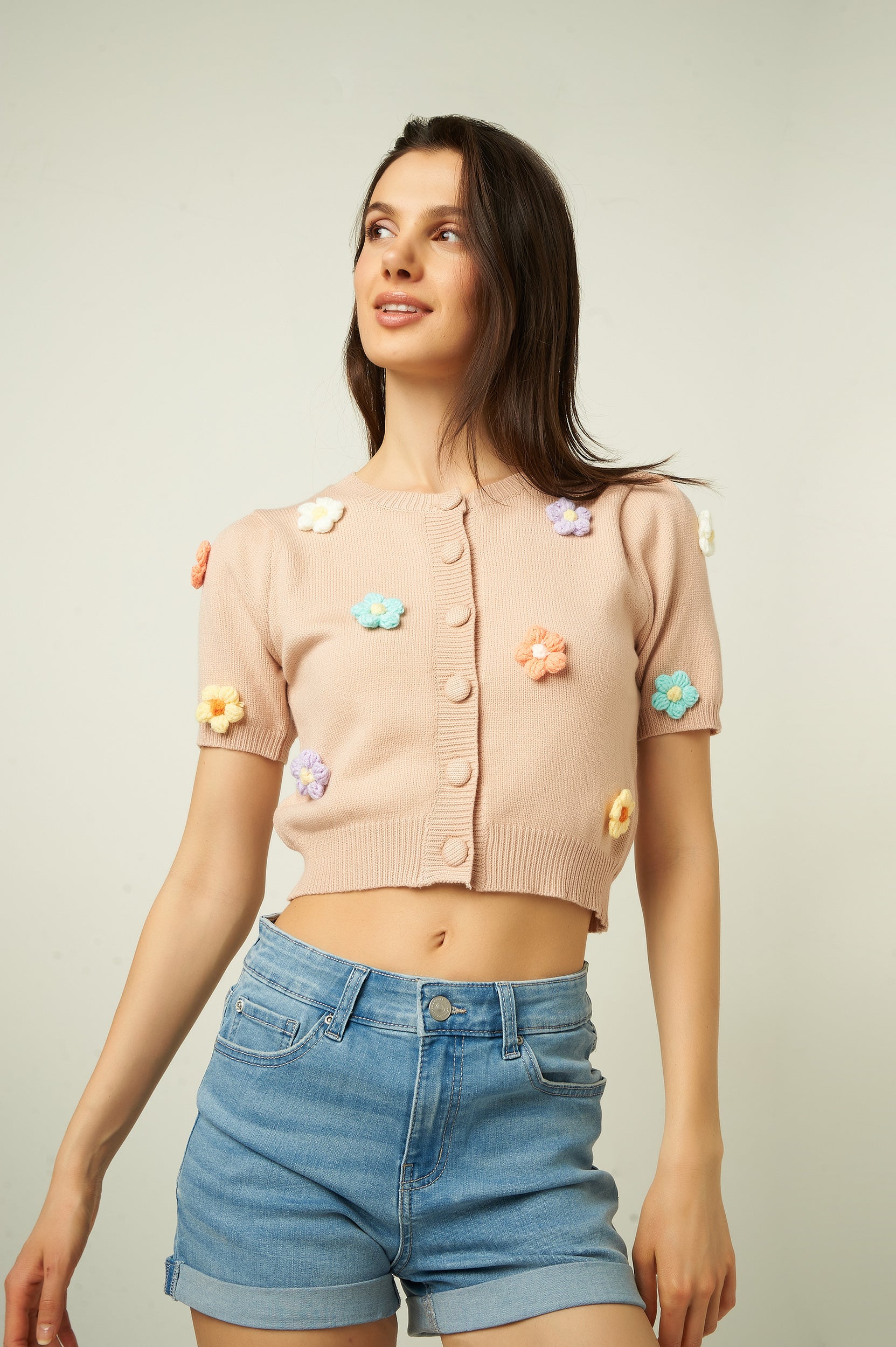 Cardigan court avec fleurs - STA2973-B - (E-B1)
