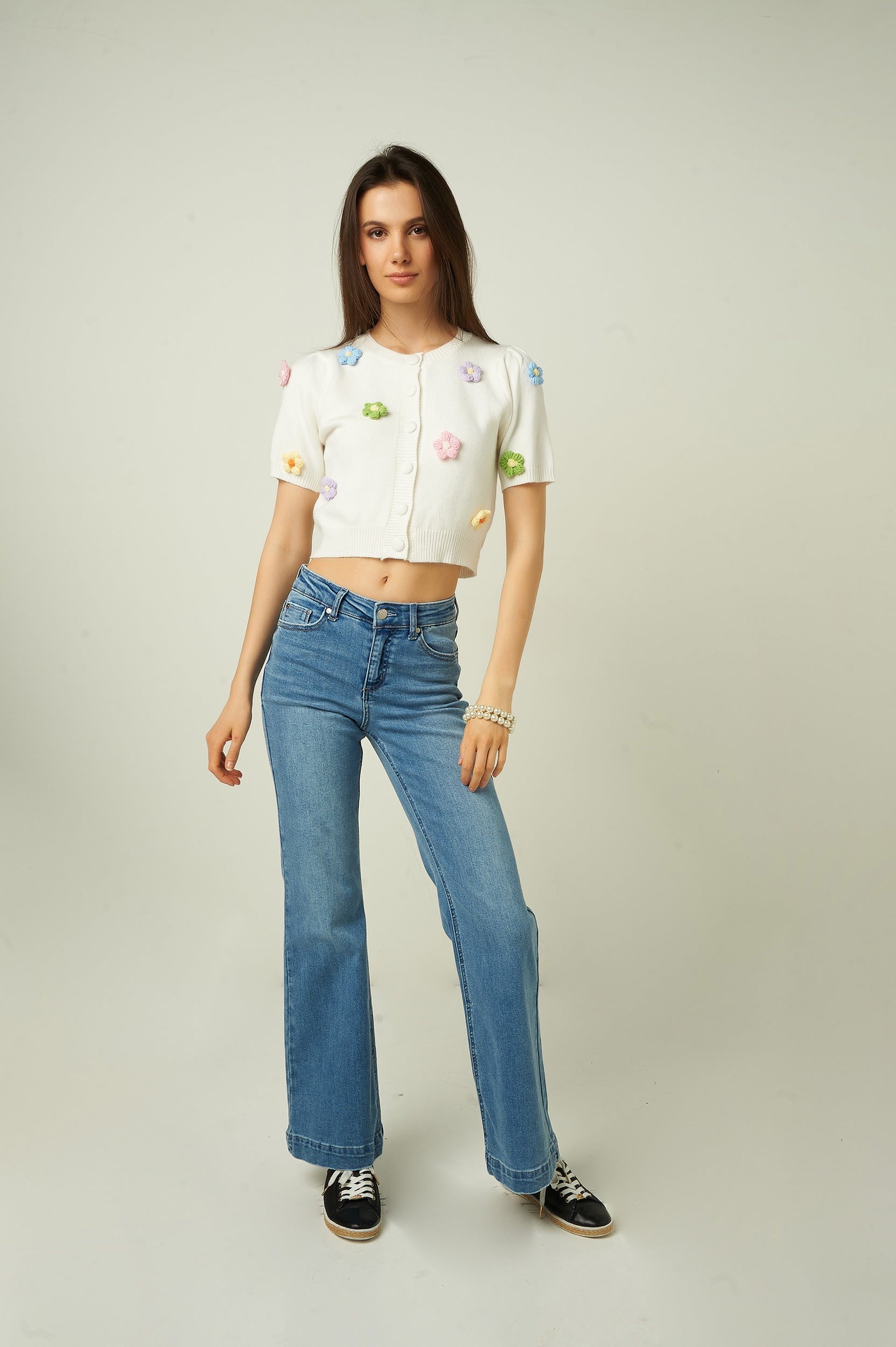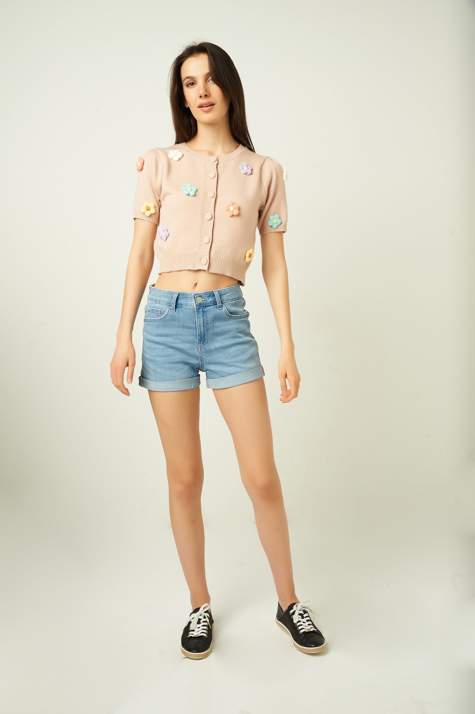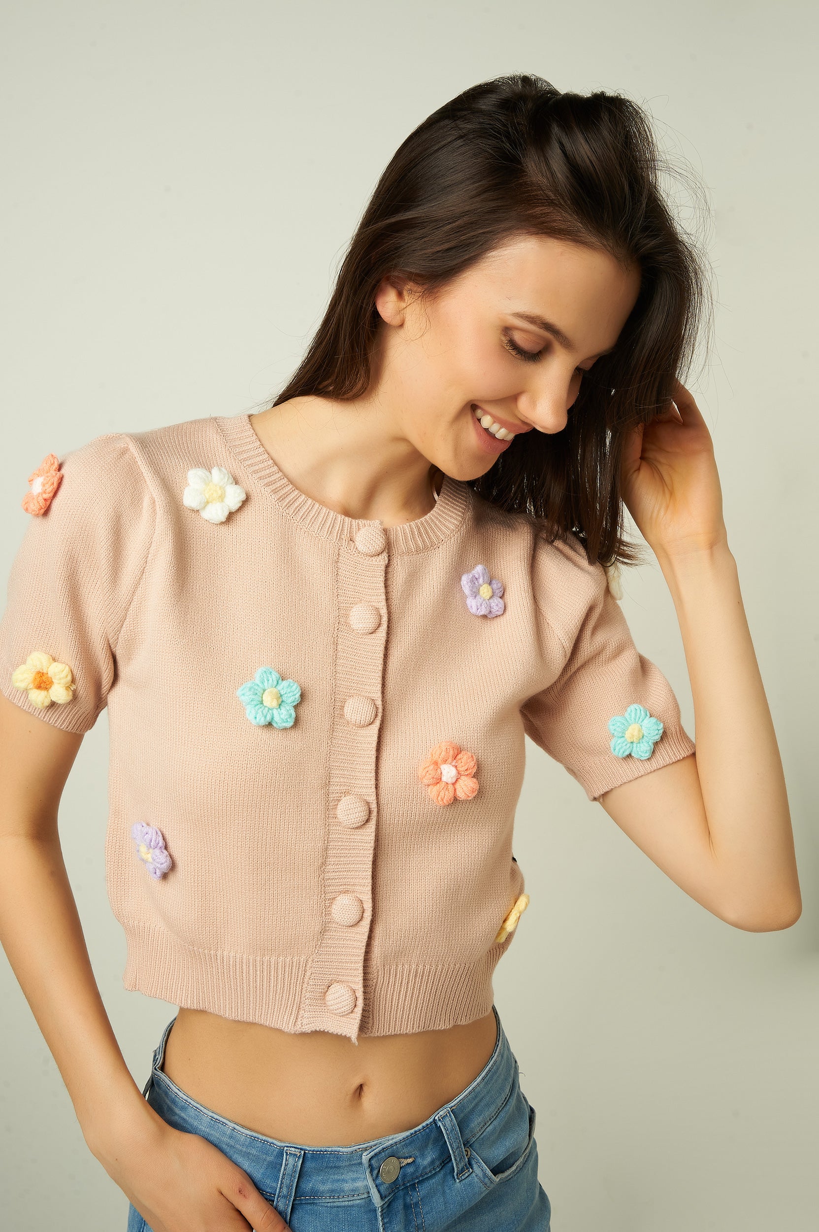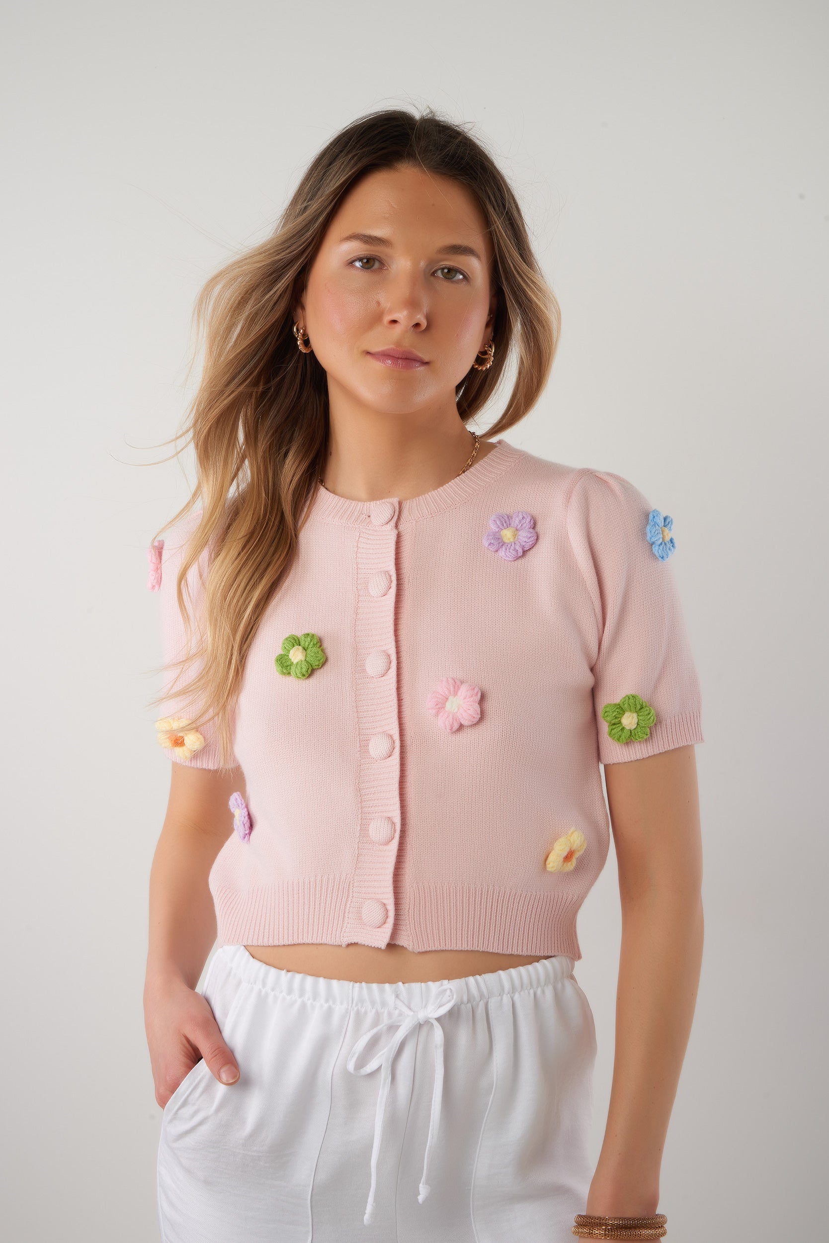 Cardigan court avec fleurs - STA2973-B - (E-B1)