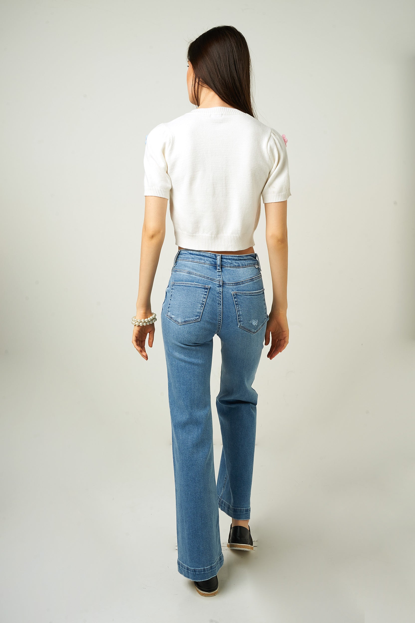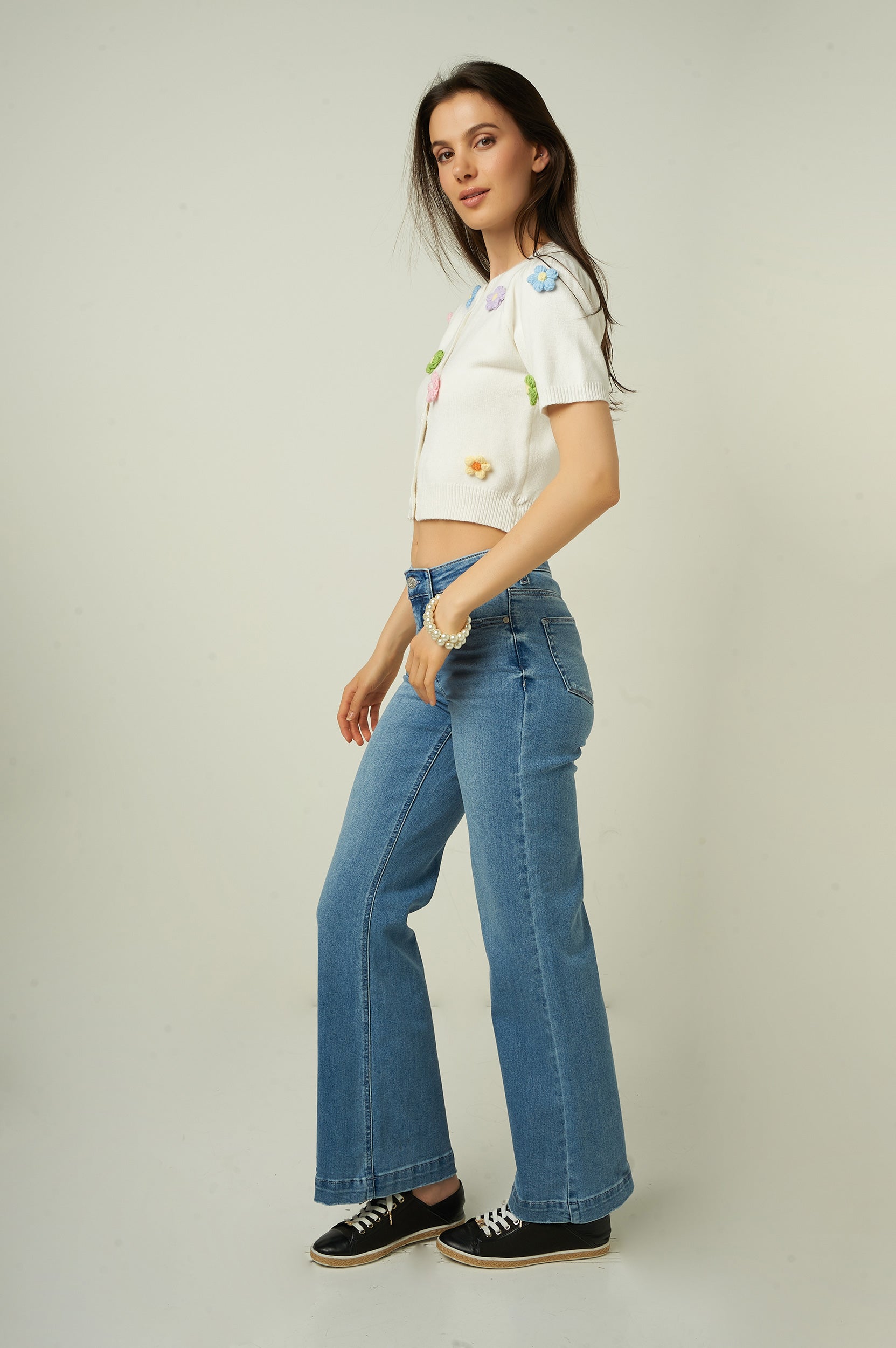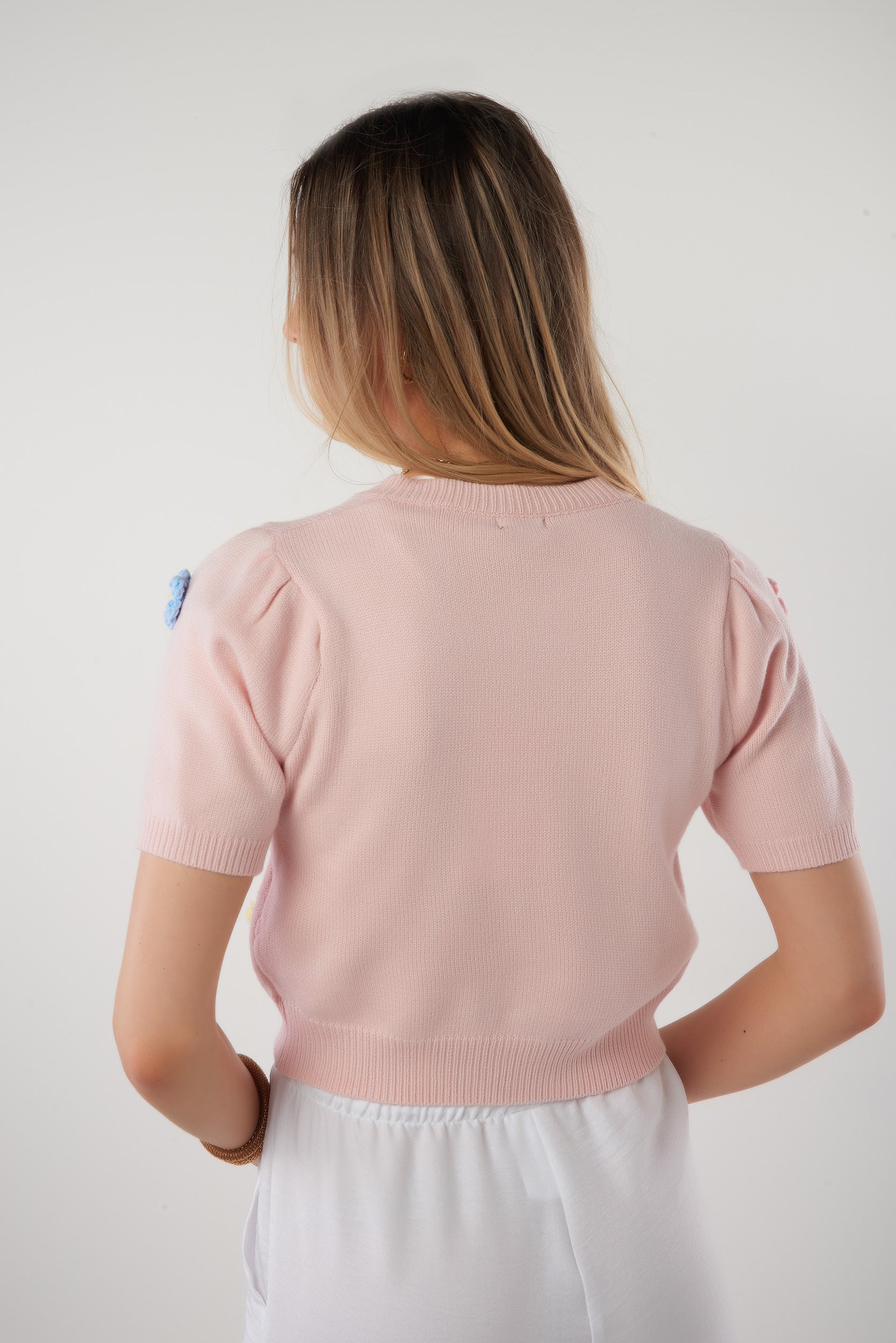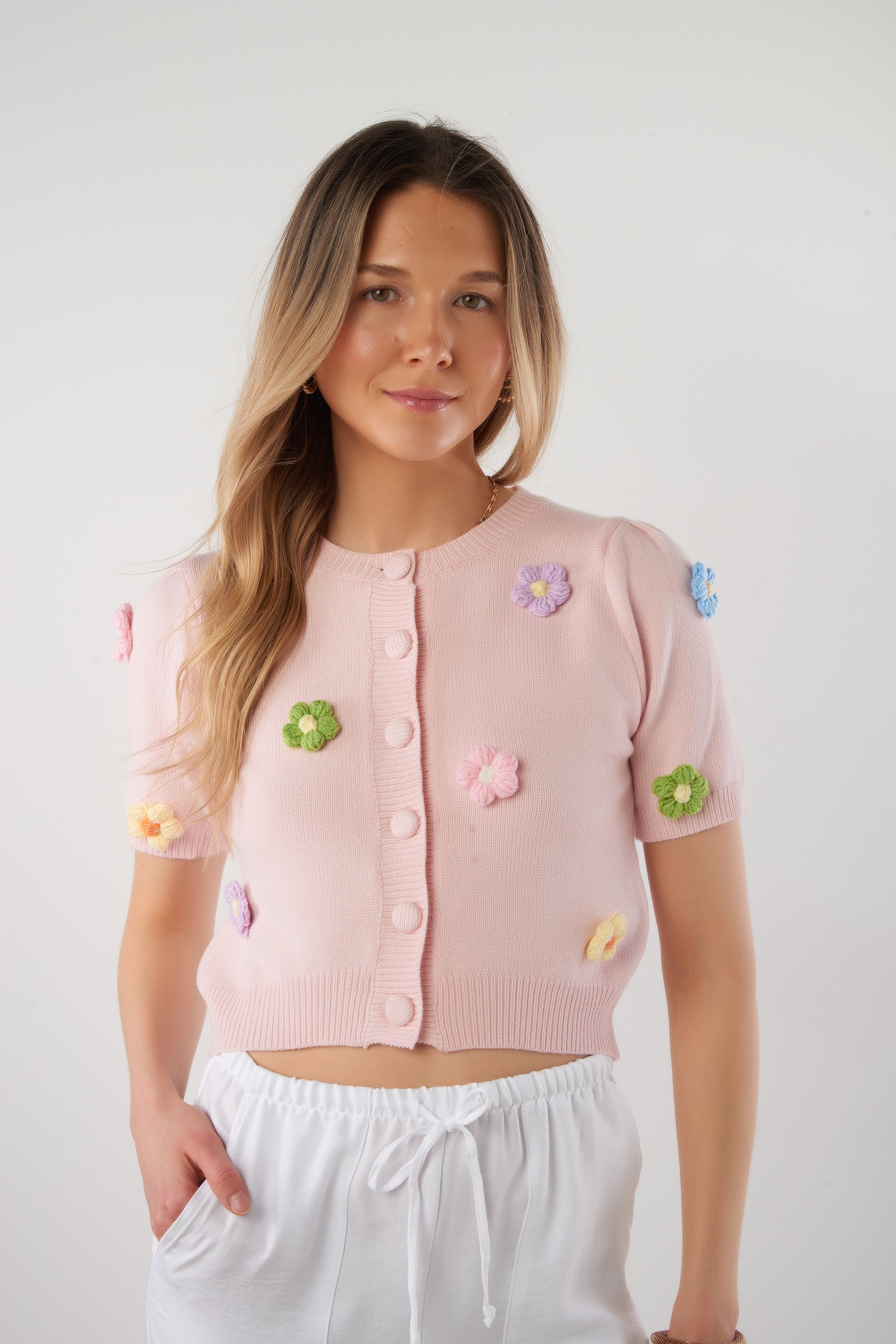 Cardigan court avec fleurs - STA2973-B - (E-B1)