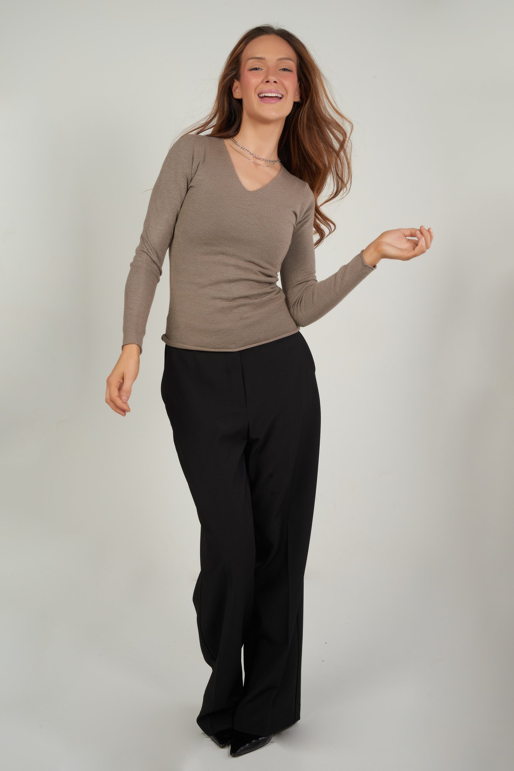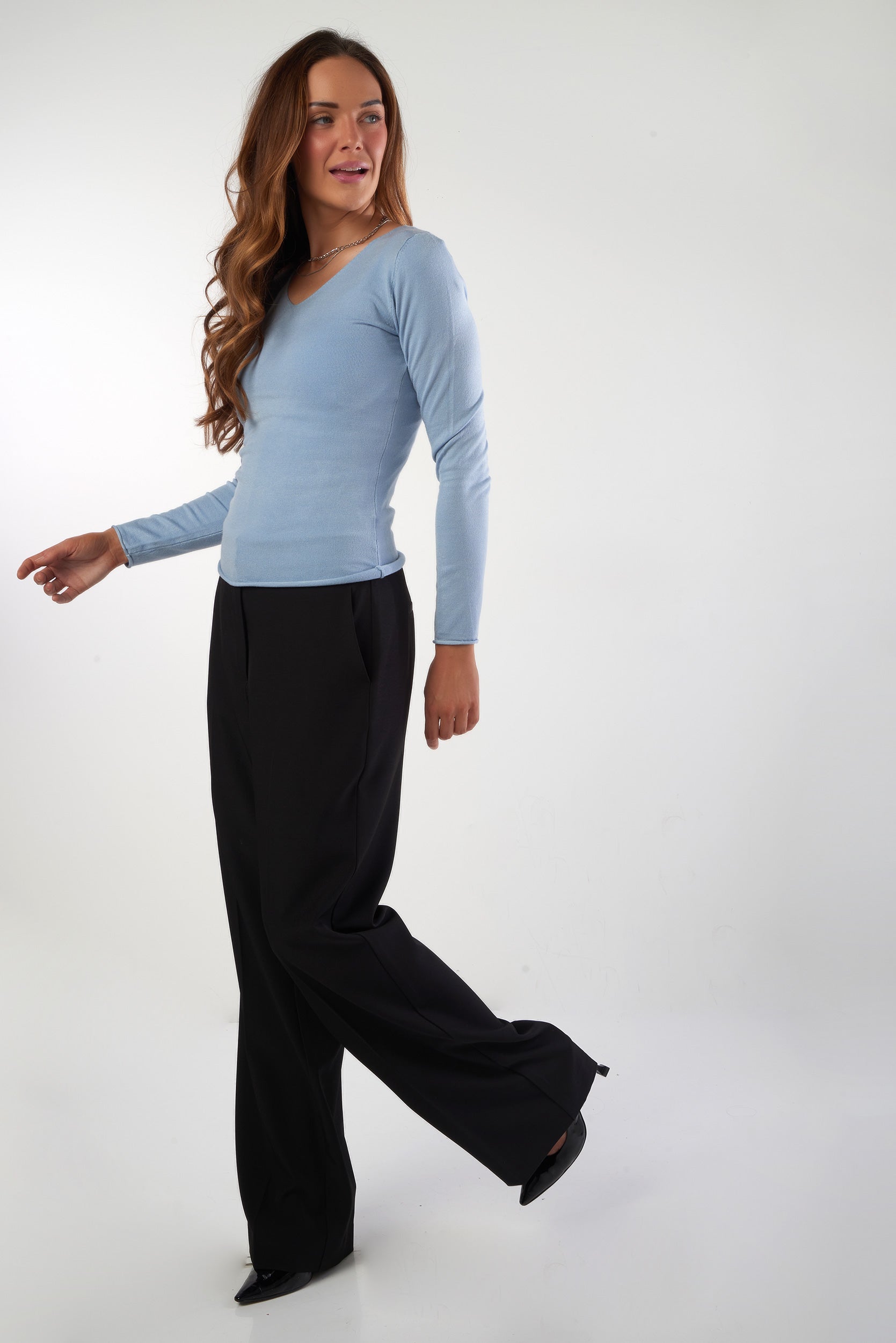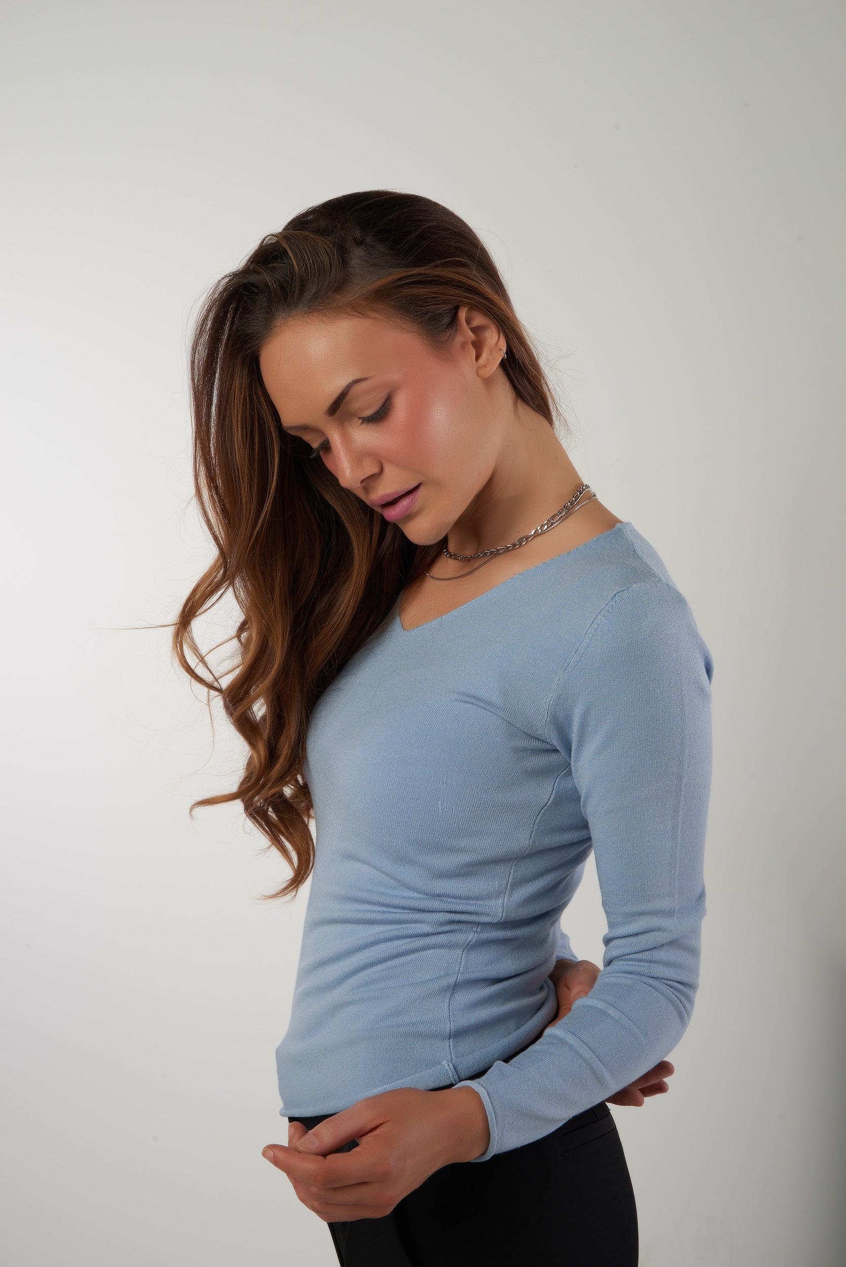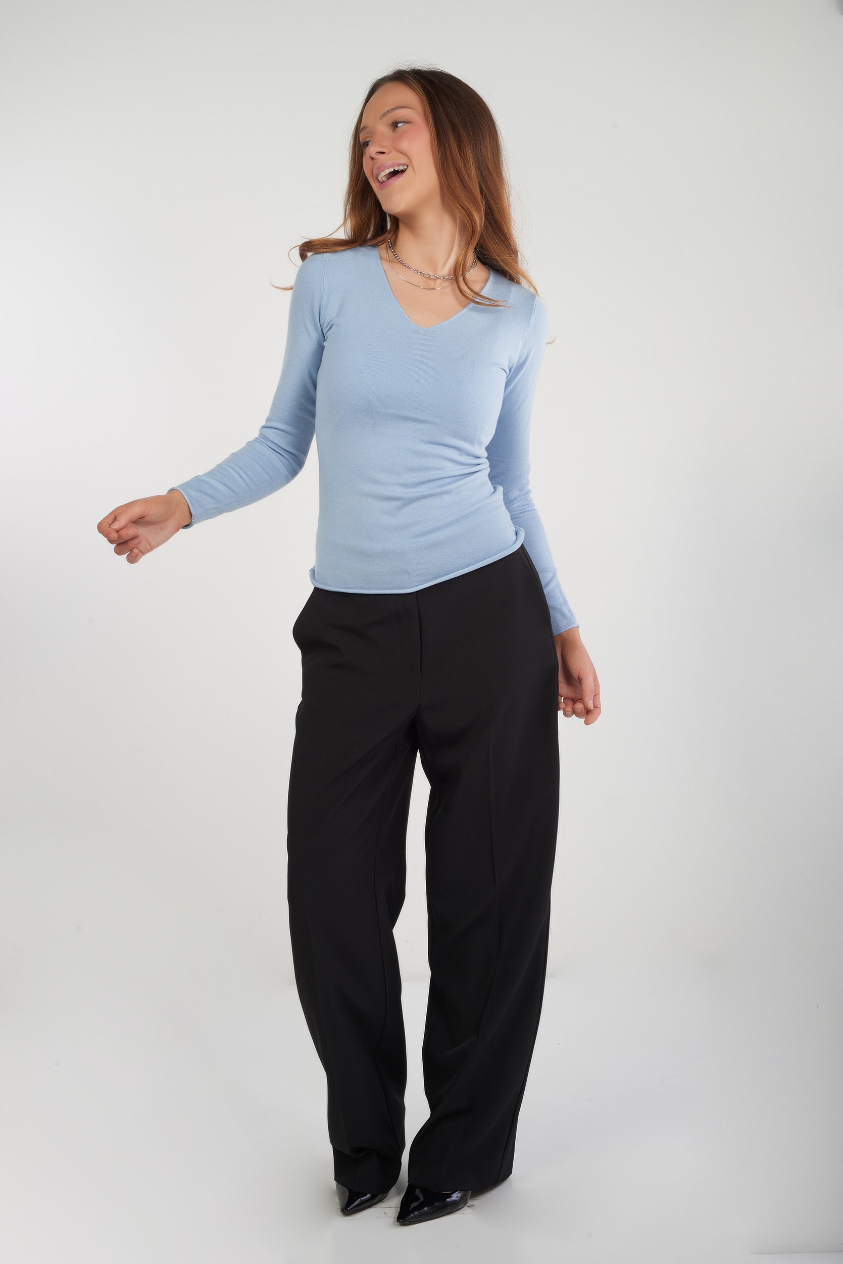 • Encolure en V.