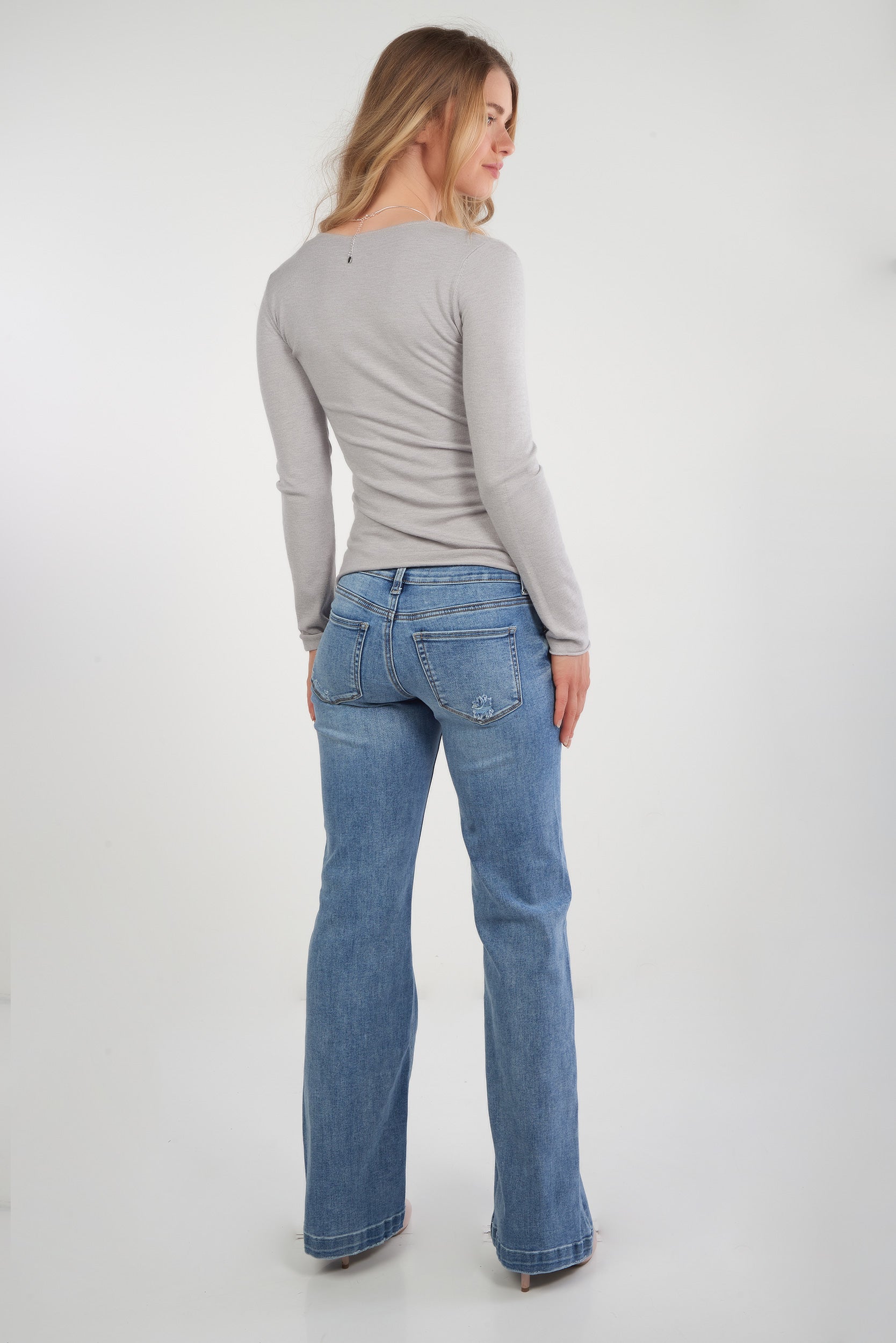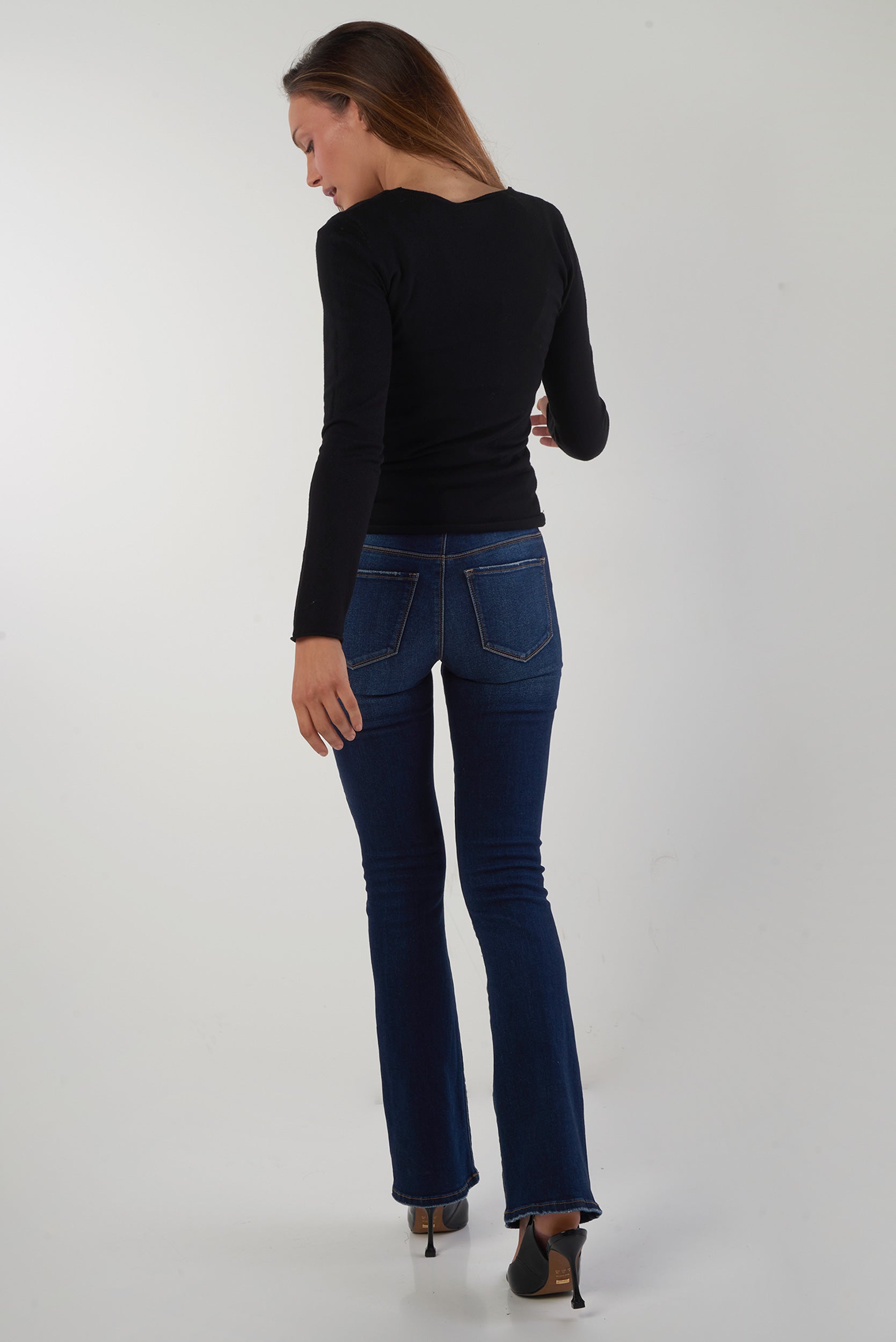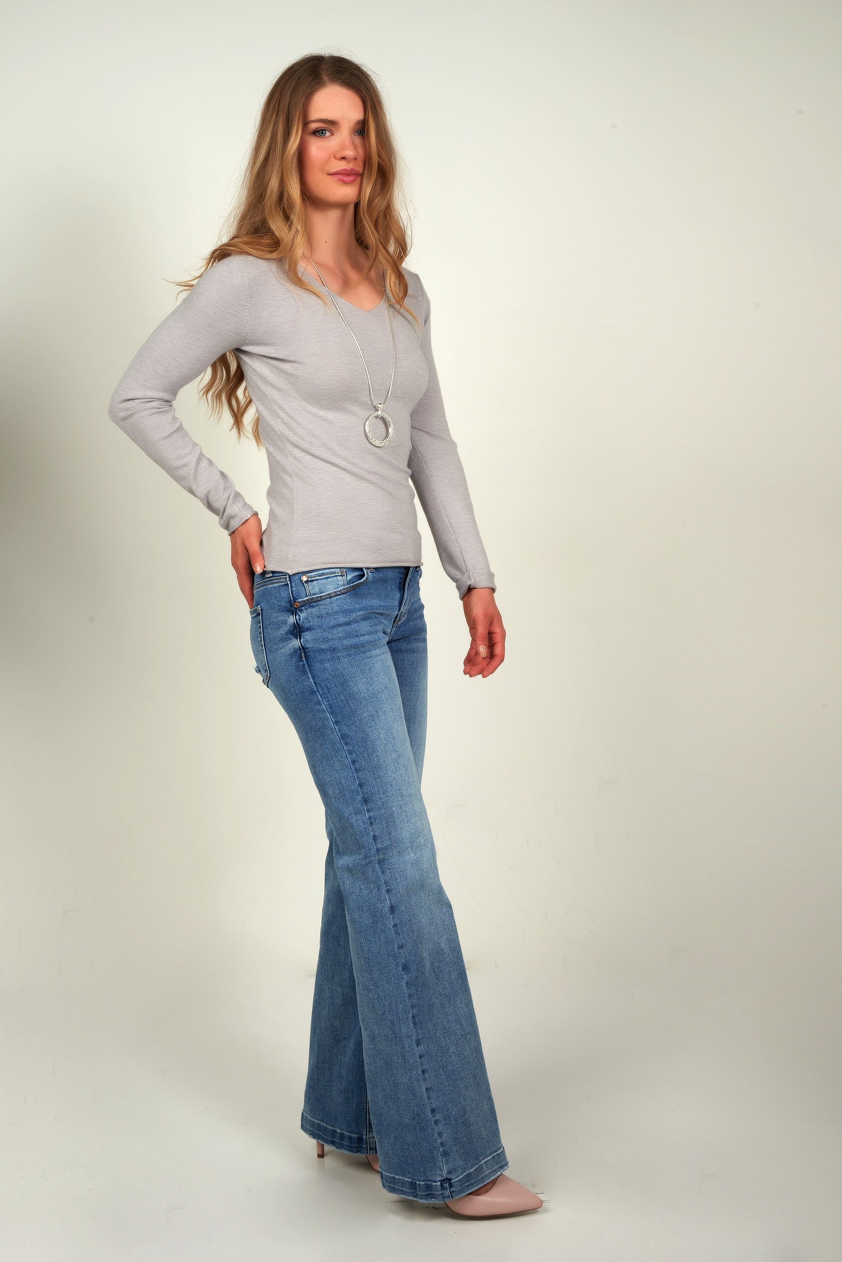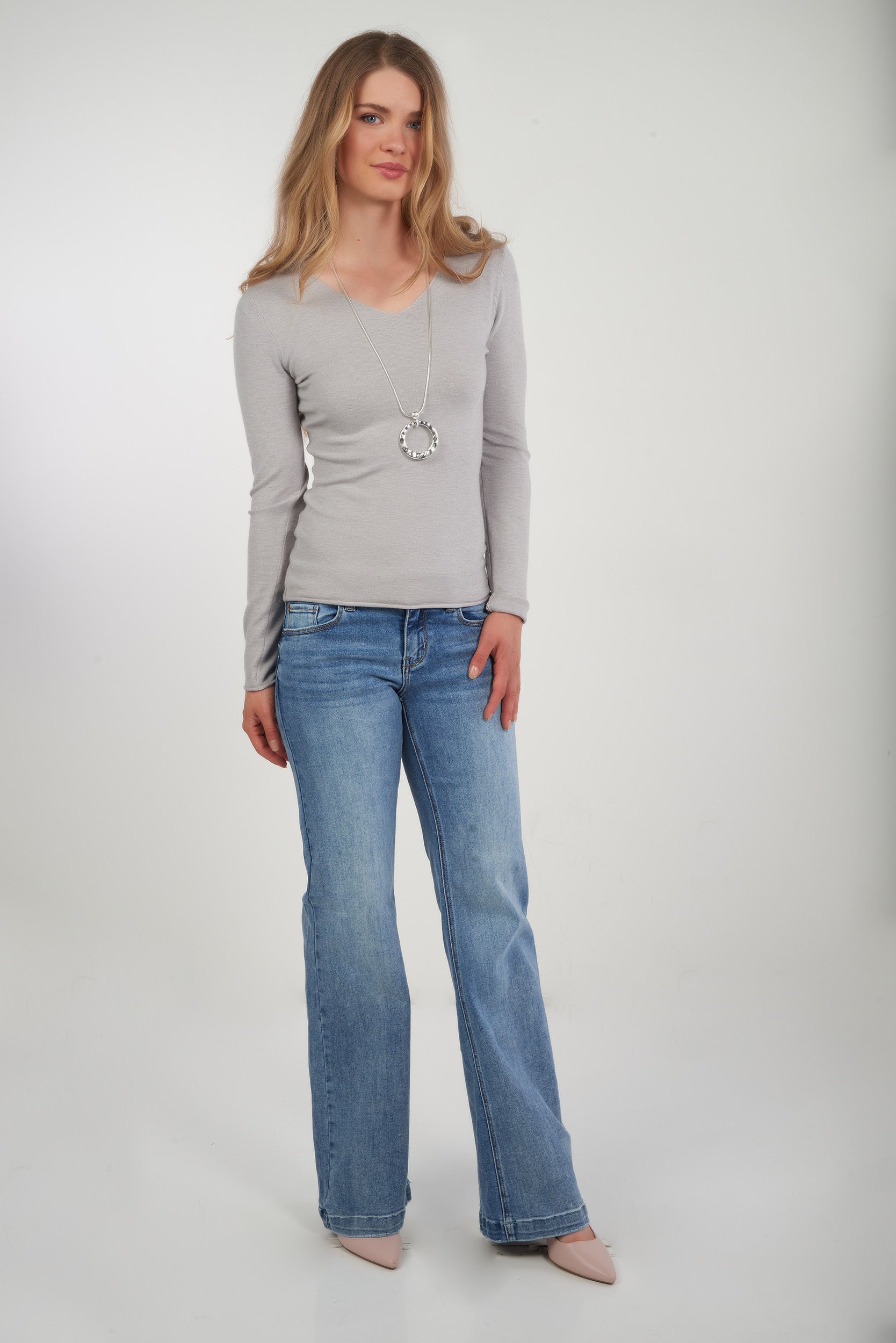 • Encolure en V.
