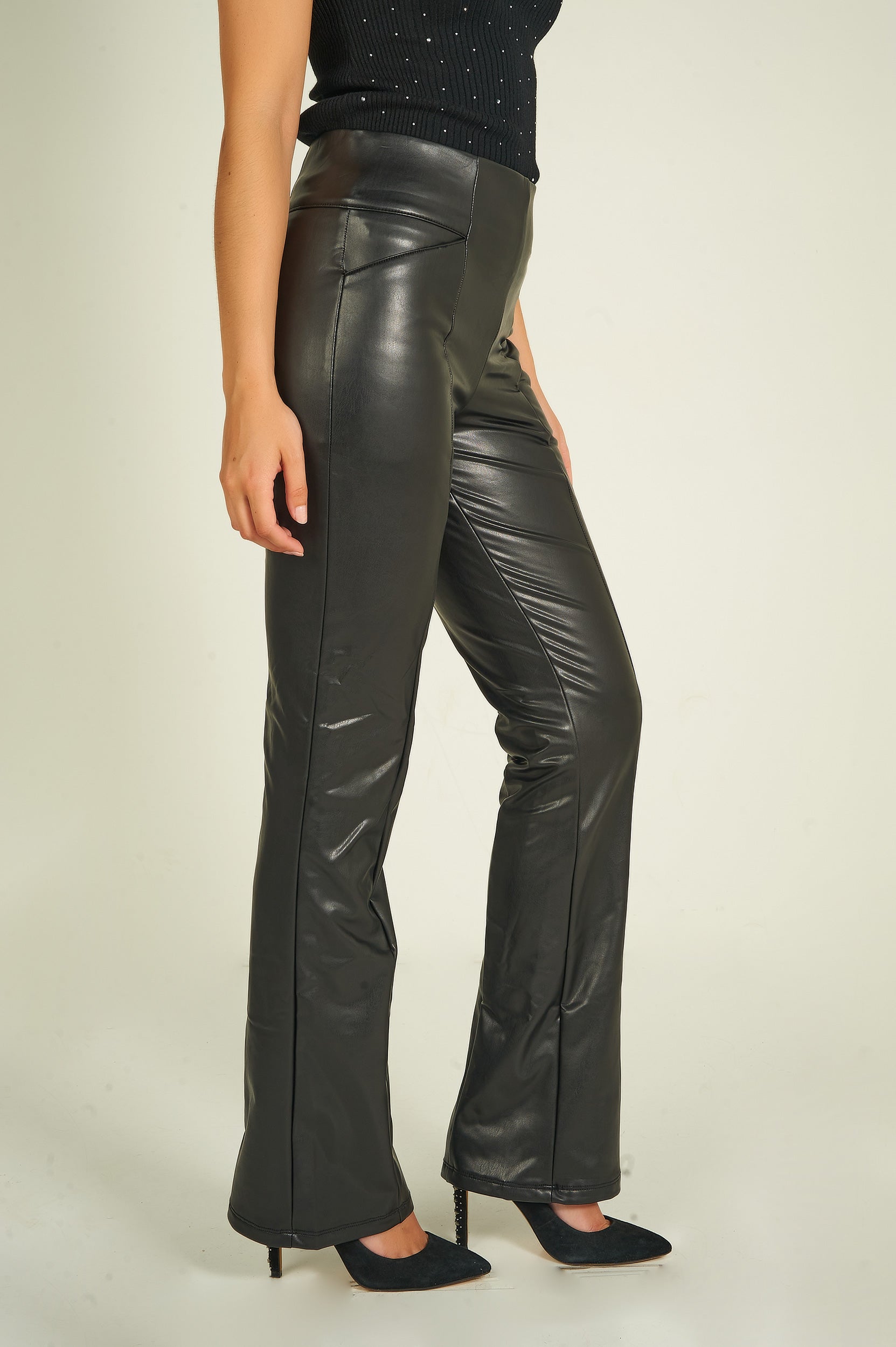 Pantalon évasé en faux cuir - AMANDINE - (E-C17) - VENTE FINALE