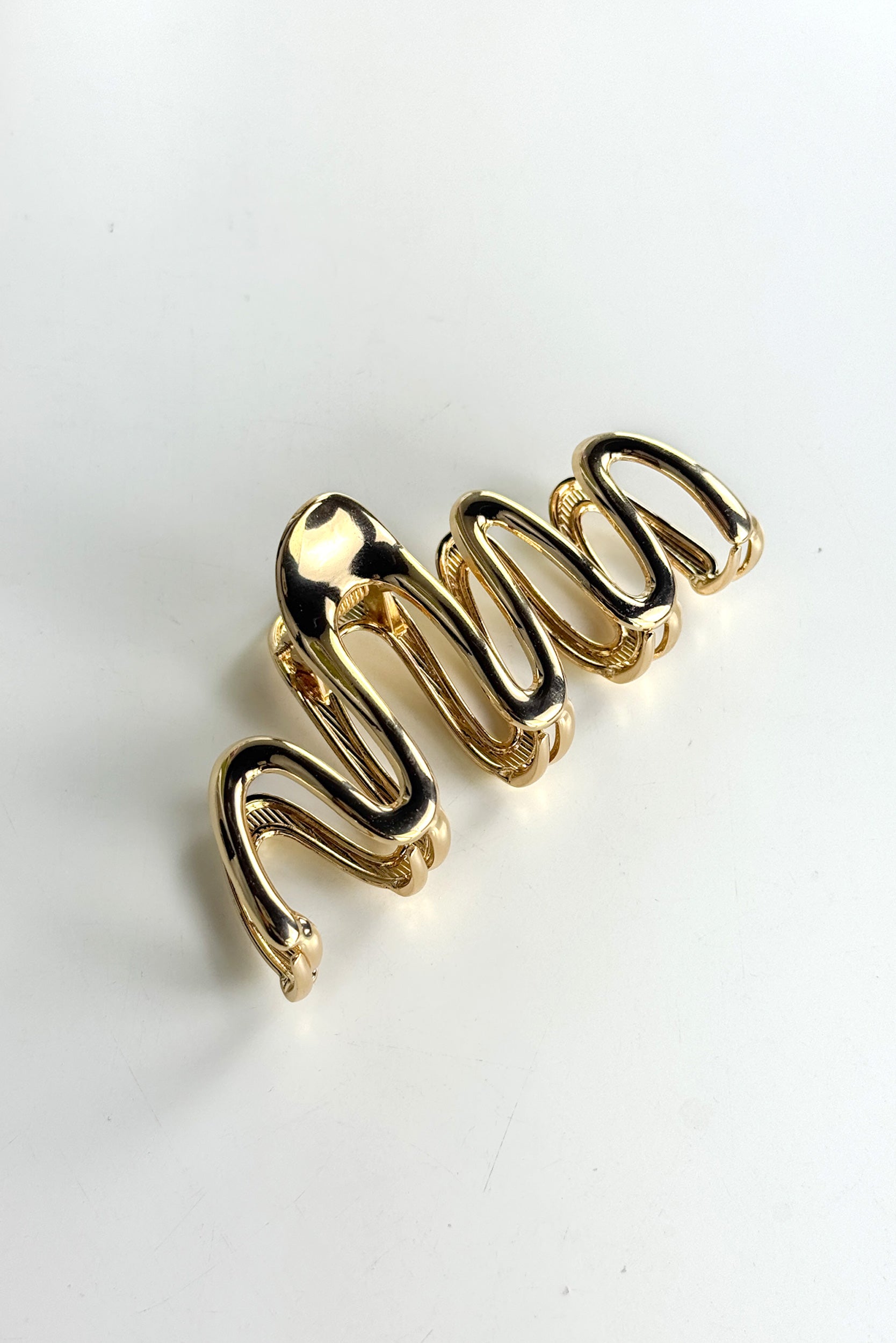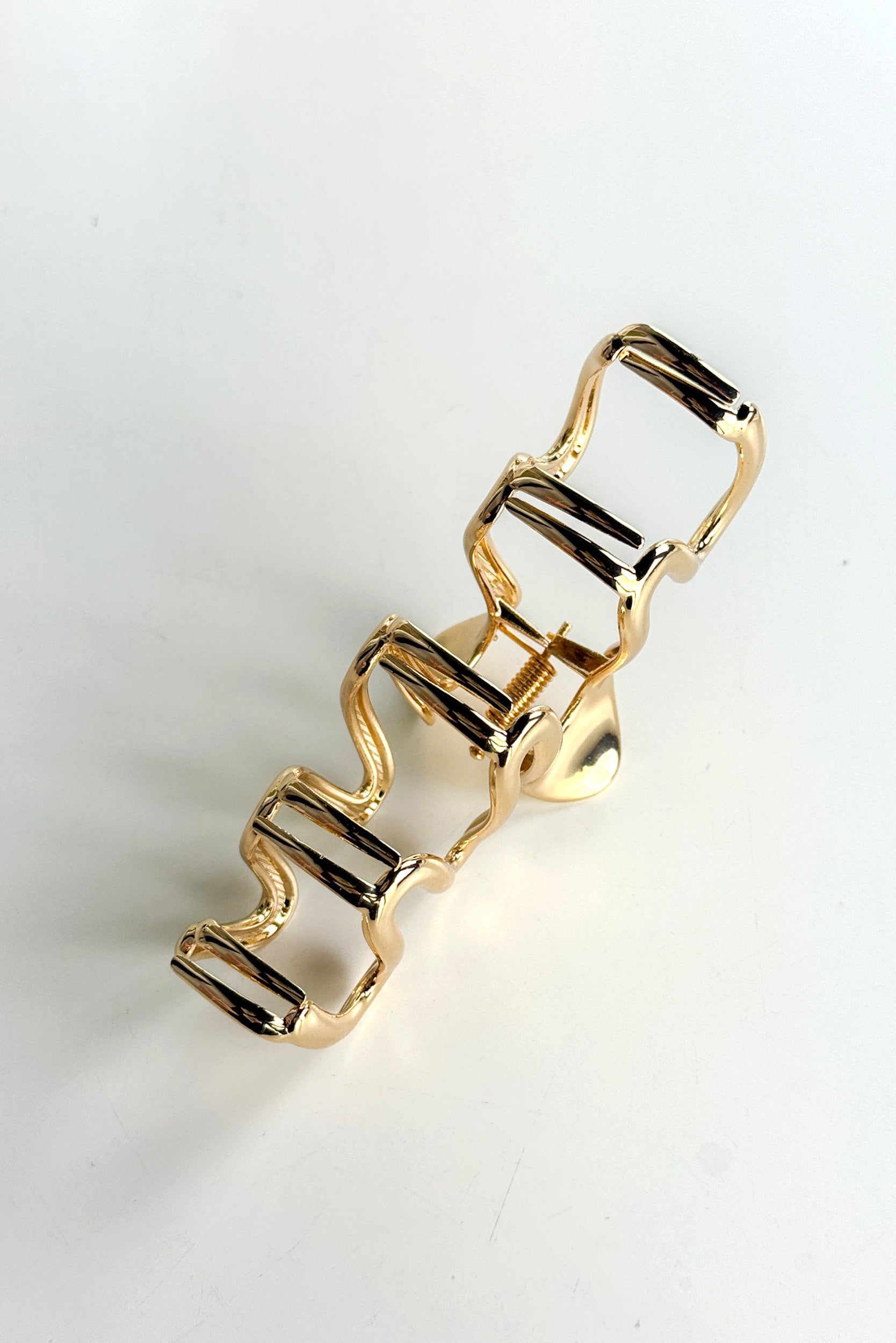 Cette pince à cheveux au design doré et élégant apporte une touche de sophistication instantanée à toutes vos coiffures. Sa forme sculpturale et moderne retient les cheveux avec style tout en ajoutant une finition raffinée.