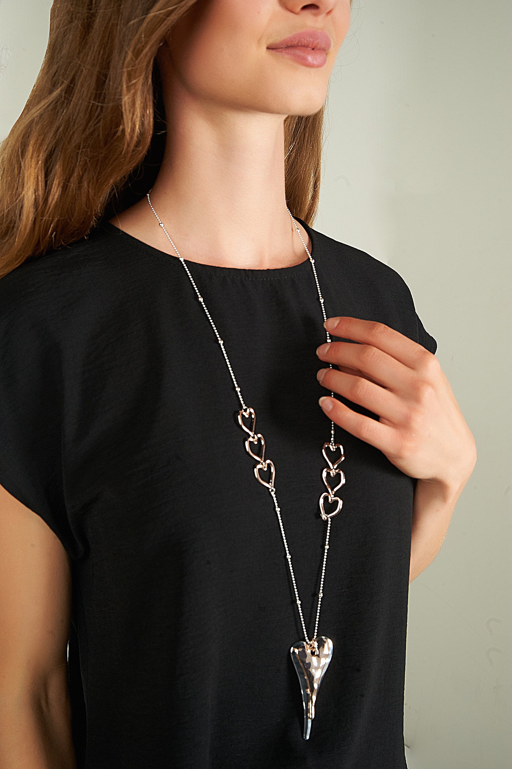 - Long collier à pendentifs coeur.
