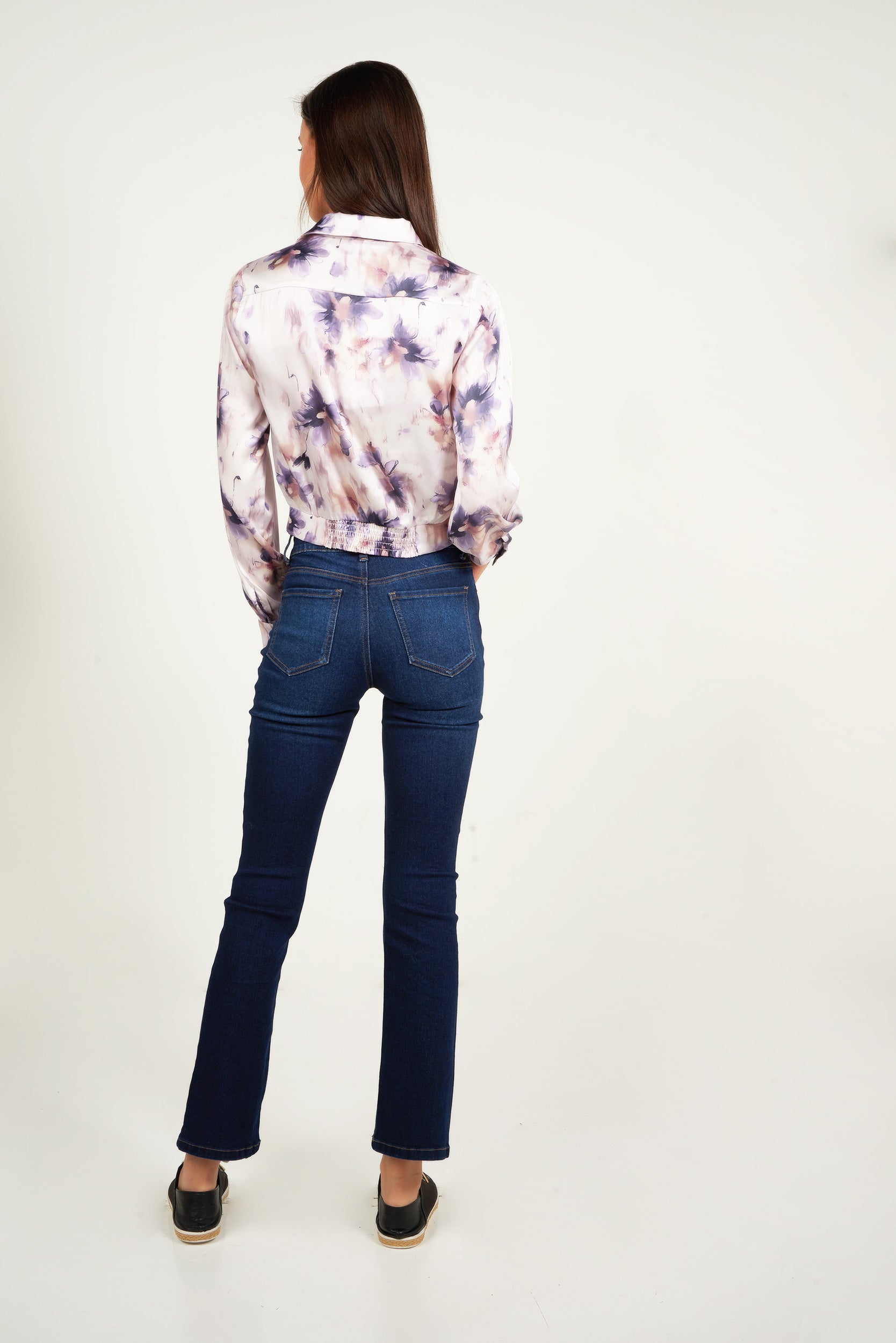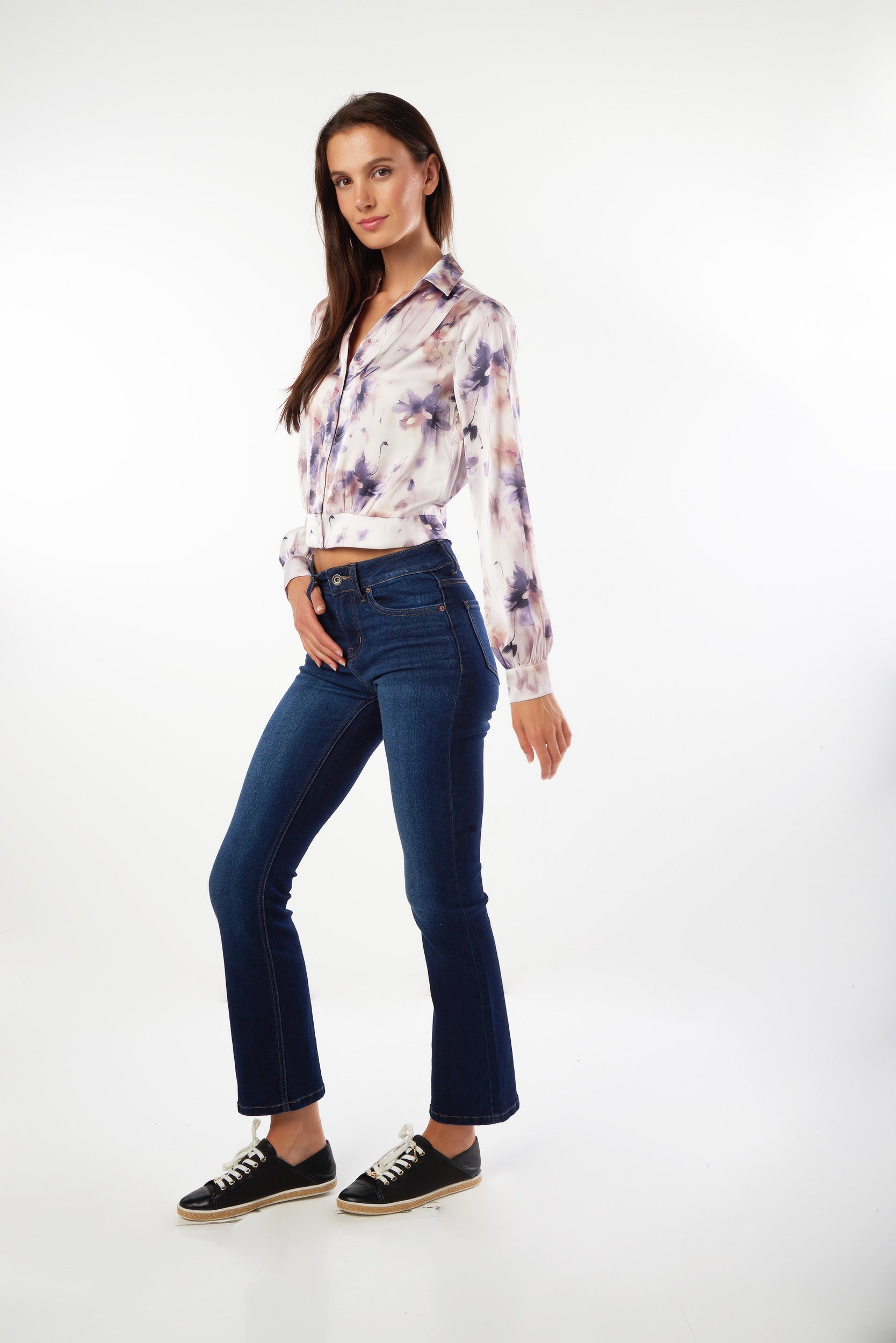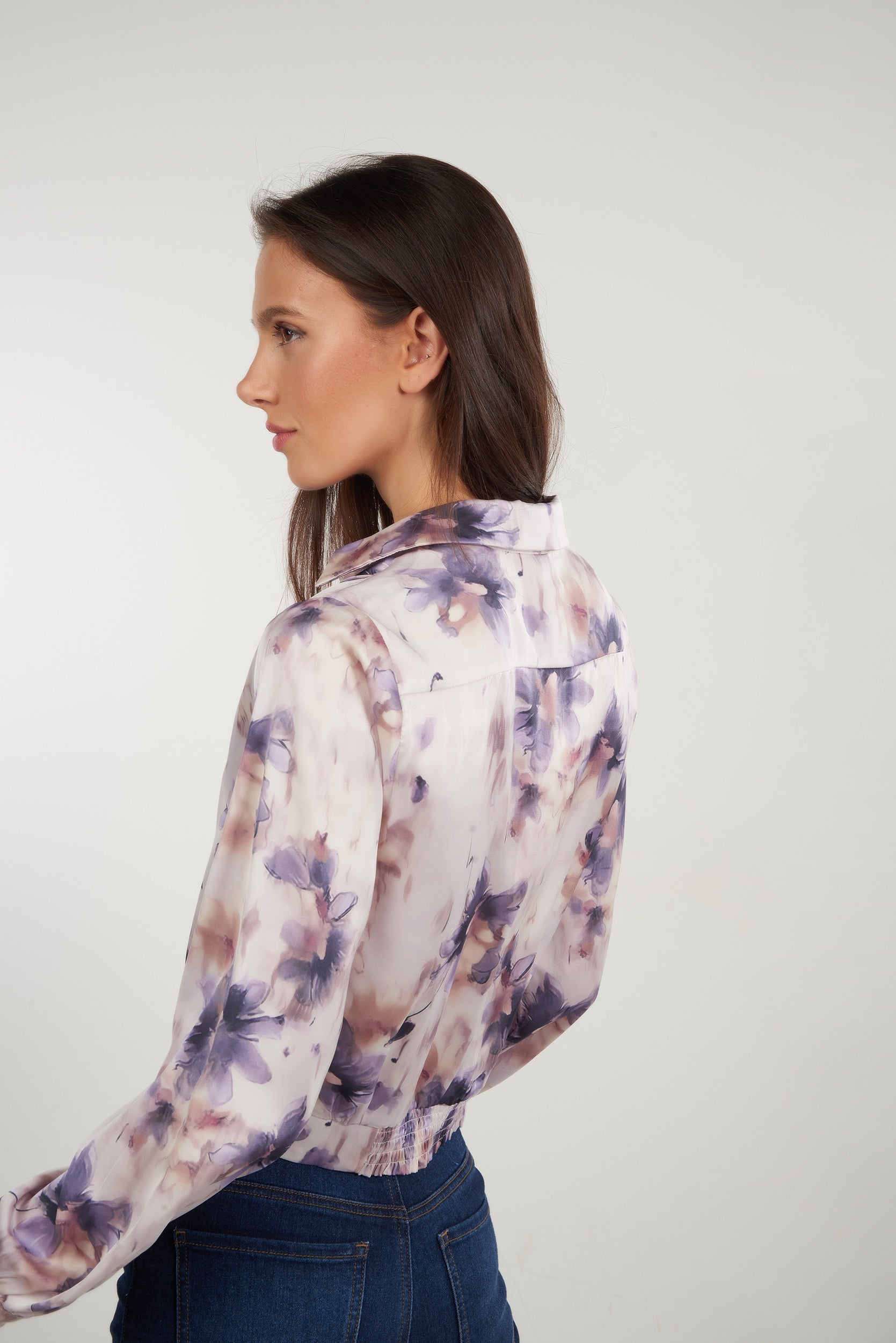 Ajoutez de l'originalité à votre garde-robe avec notre blouse pour femme, la blouse courte, FINAY2F. Une chemise pour femme qui saura rehausser vos tenues avec son col classique, sa fermeture par boutons, sa bande élastique à la taille, ses fronces, son effet satiné et son imprimé fleuri