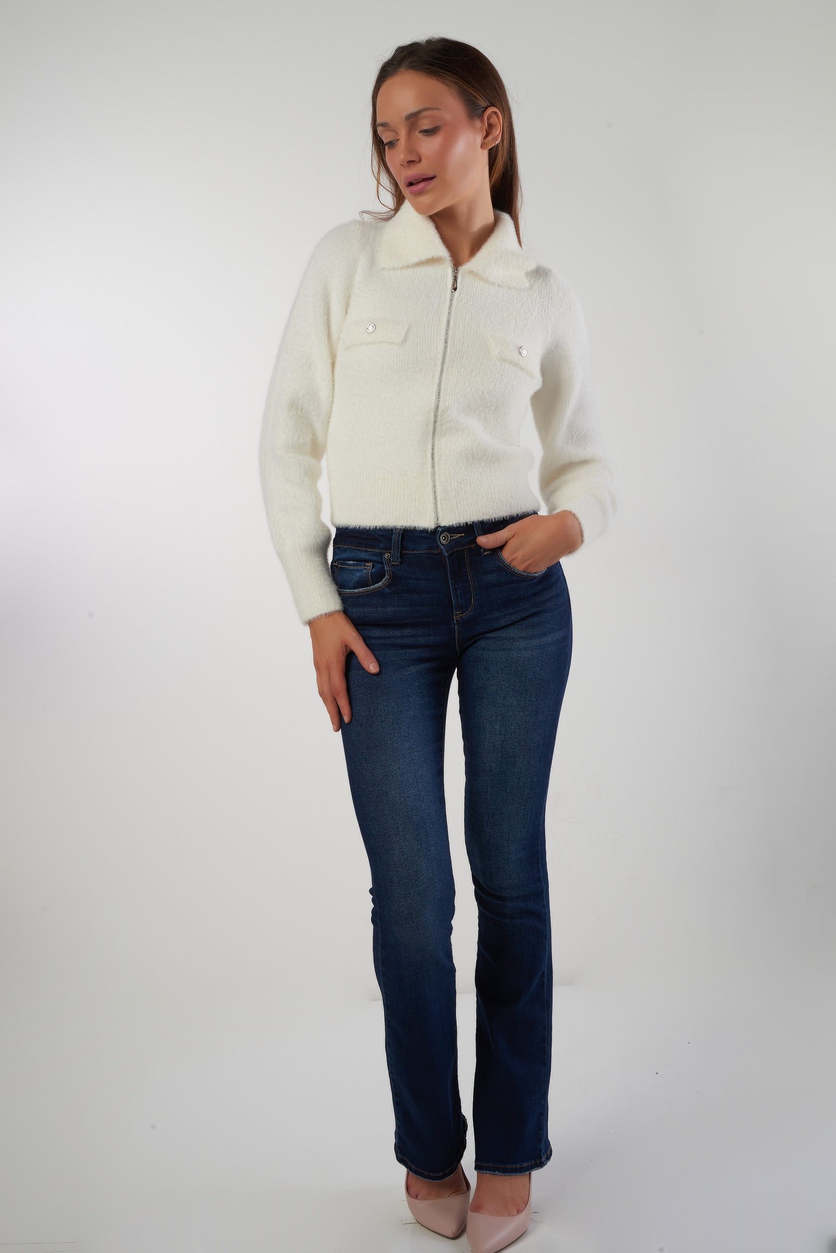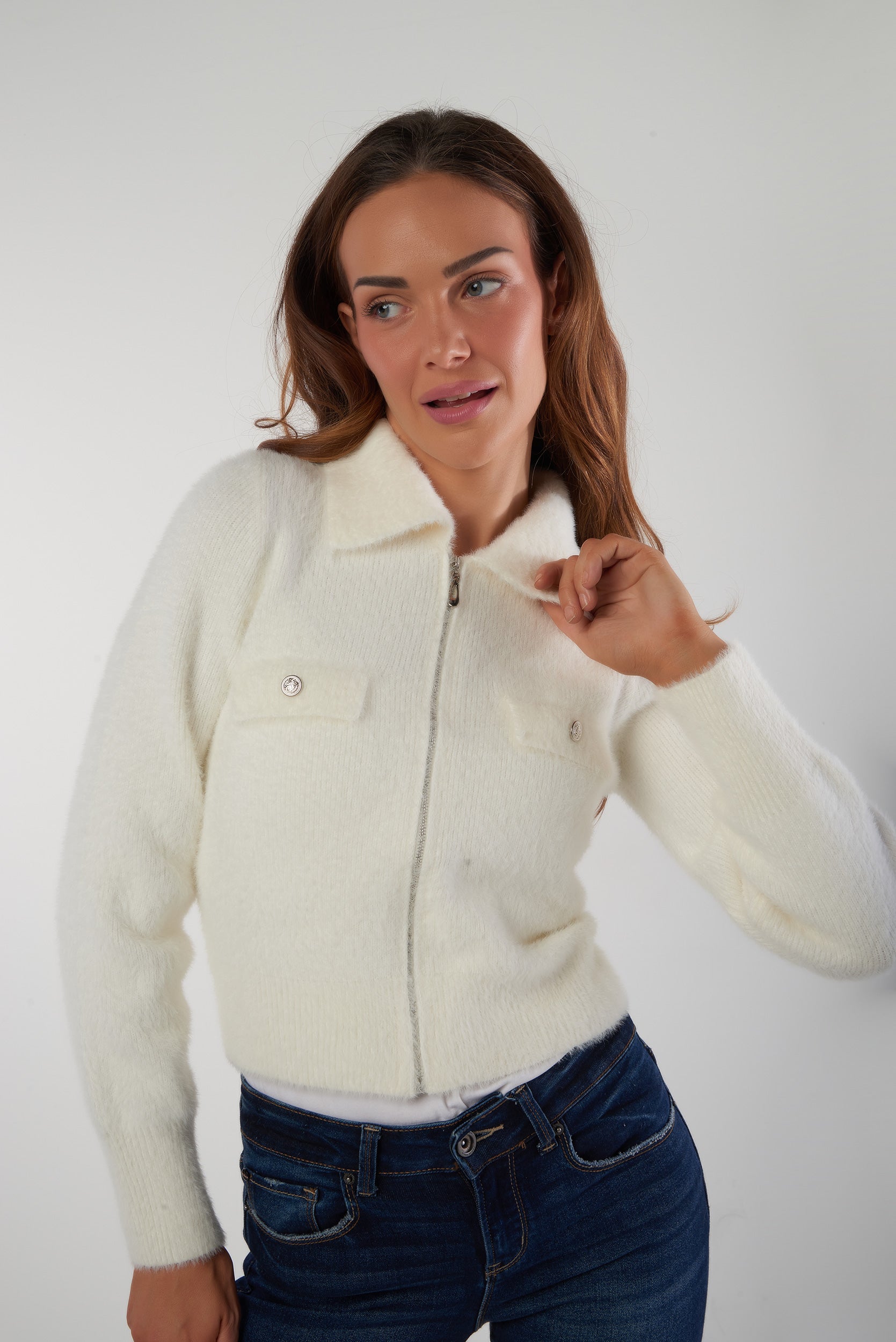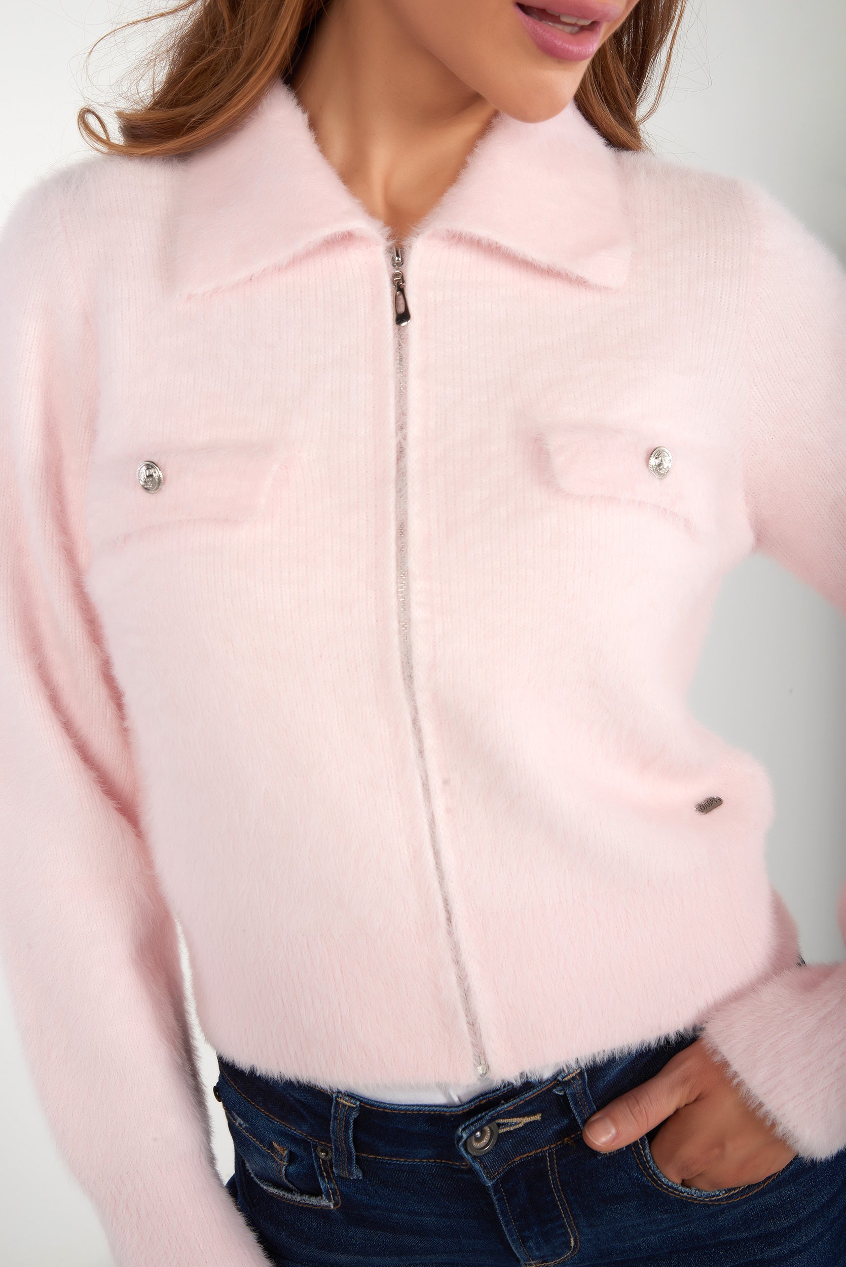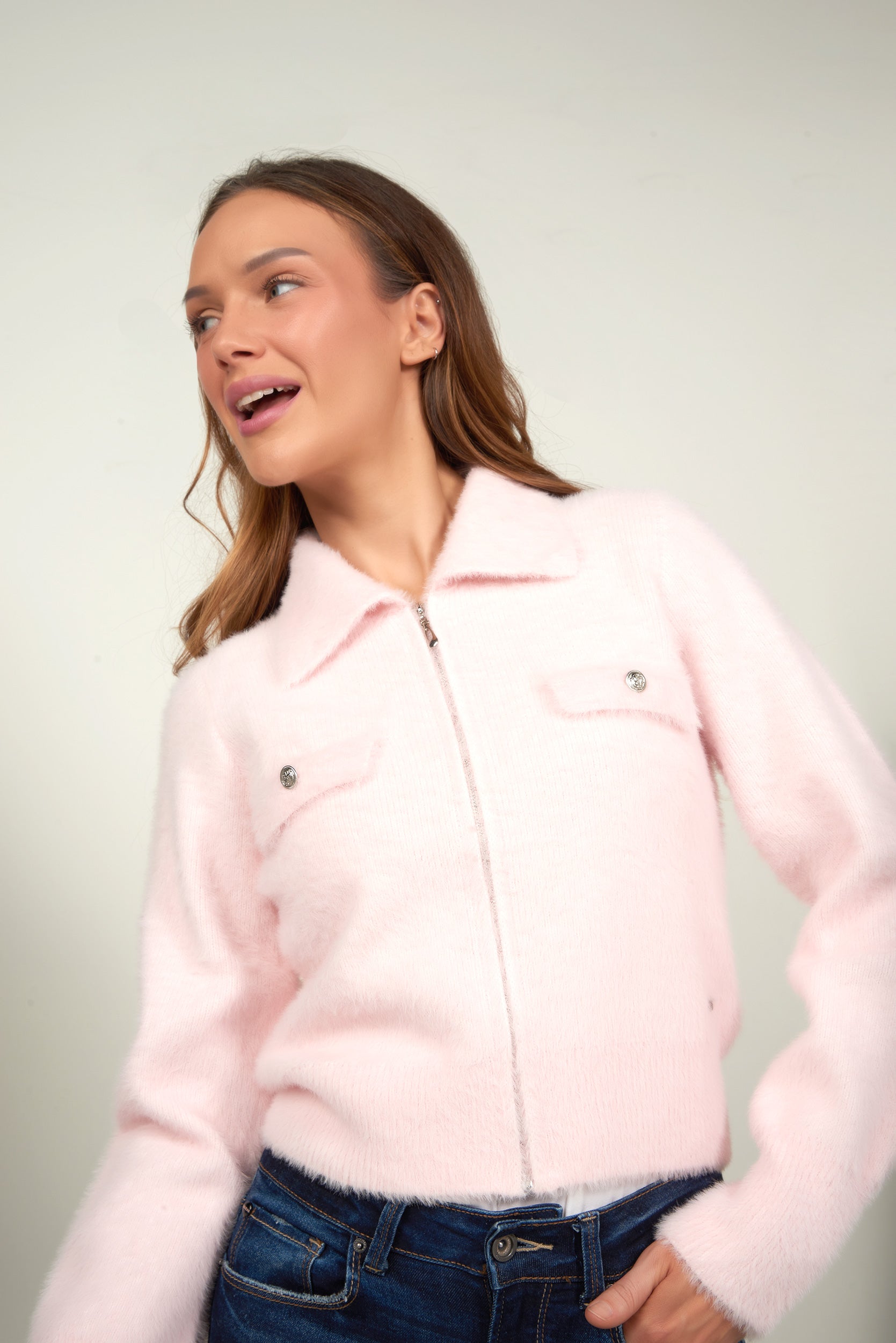 Cardigan fluffy avec zip - VALESKA - (E-B8)