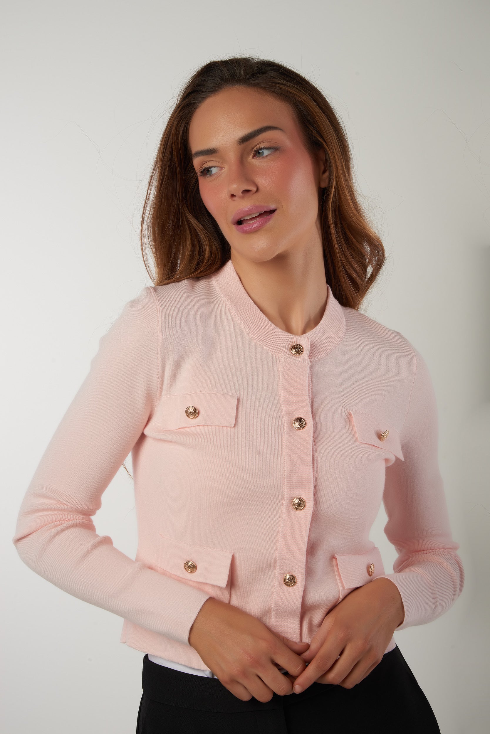 Découvrez nos chandails pour femme chics et élégants, comme le cardigan pour femme Milton. Ses manches longues, ses quatre poches et ses boutons dorés en font un haut au look Chanel. Il se porte parfaitement avec un jean, un pantalon chic ou une jupe. Disponible en deux couleurs : blanc cassé et rose.