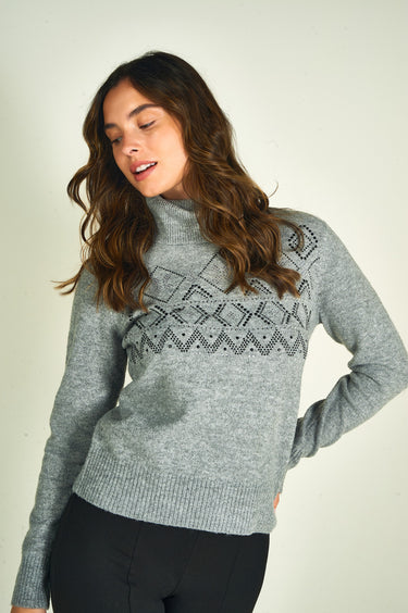 Chandail à col roulé avec pierres - MAGNOLIA - (E-B17) - VENTE FINALE