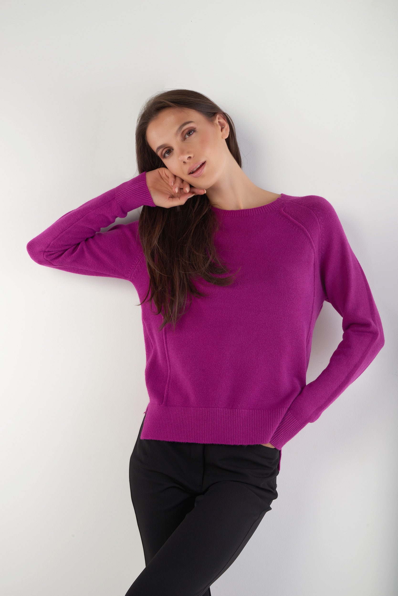 Découvrez un essentiel qui ajoutera de la couleur à votre garde-robe, le chandail pour femme QZ42249. Ce tricot, à manches longues et col rond, est la pièce qui vous faut pour rehausser tous vos looks basiques. Disponible en trois couleurs : chandail bleu, chandail fushia et chandail mauve.