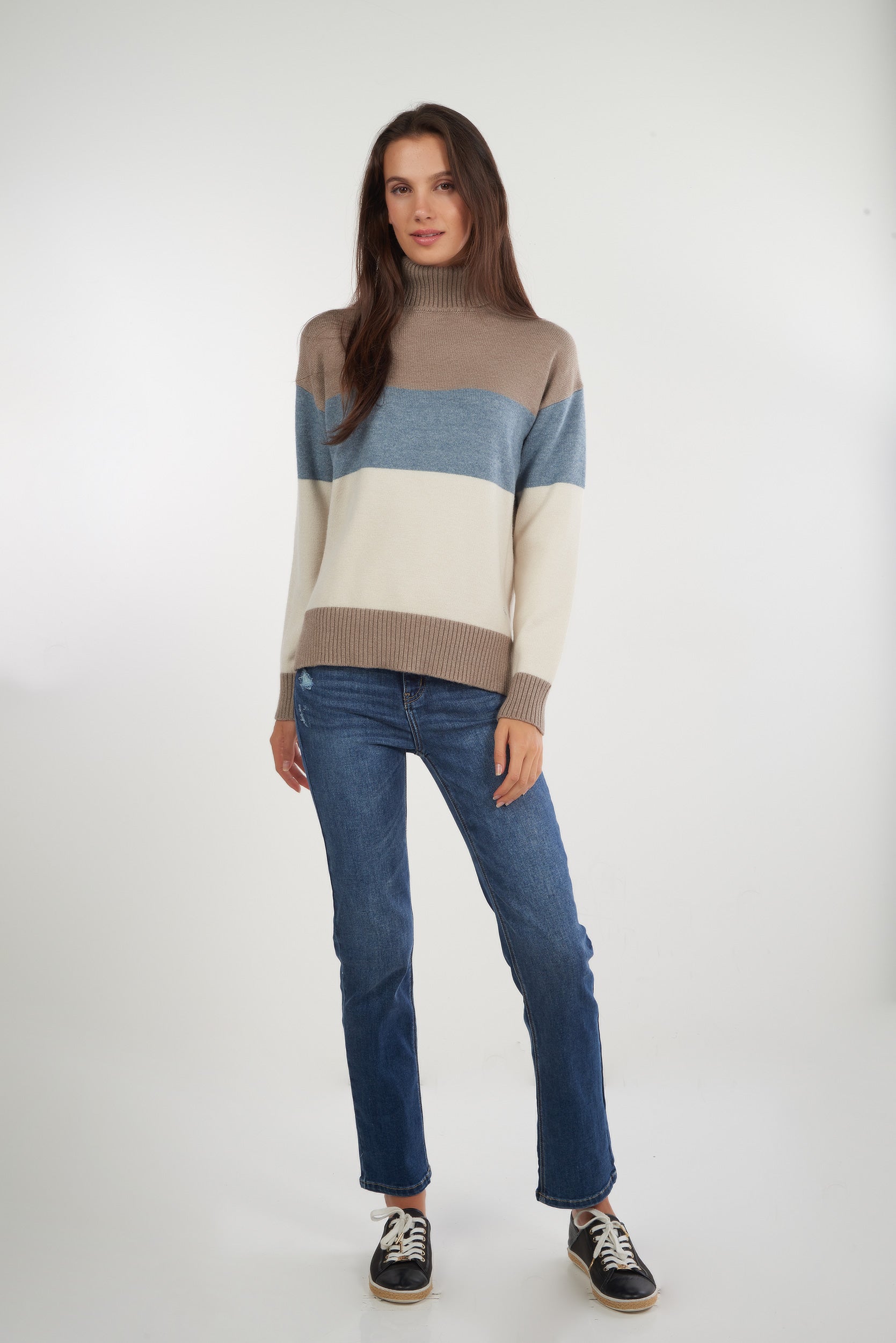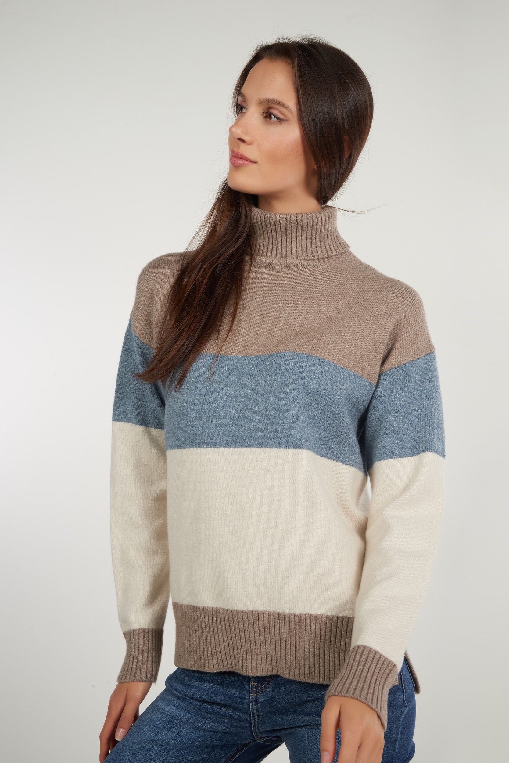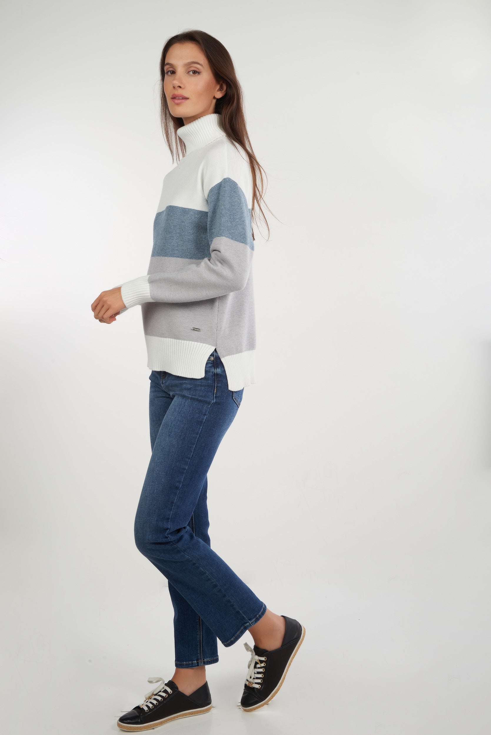 Chandail rayé à col montant - ANCOLIE-25 - (E-B9)