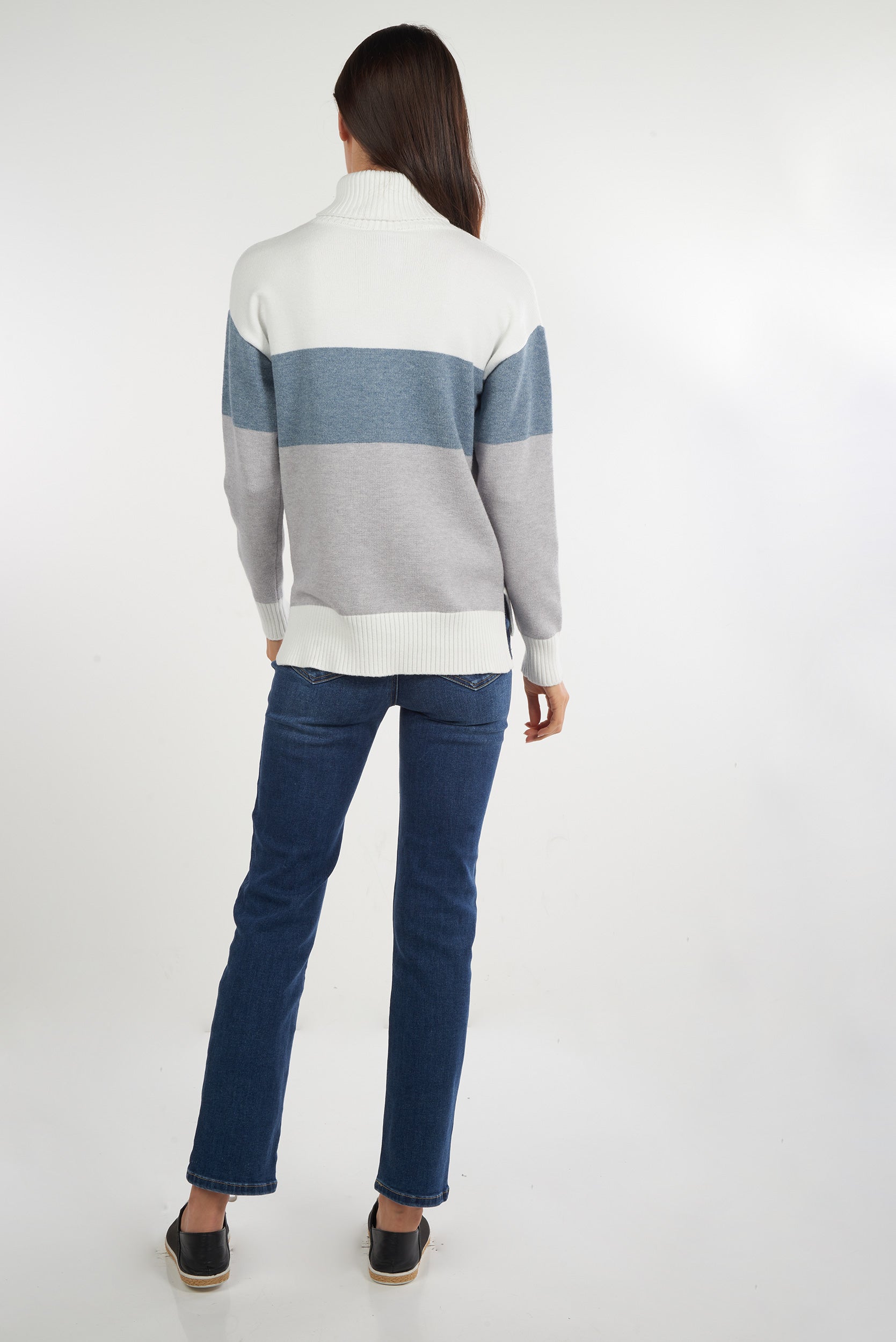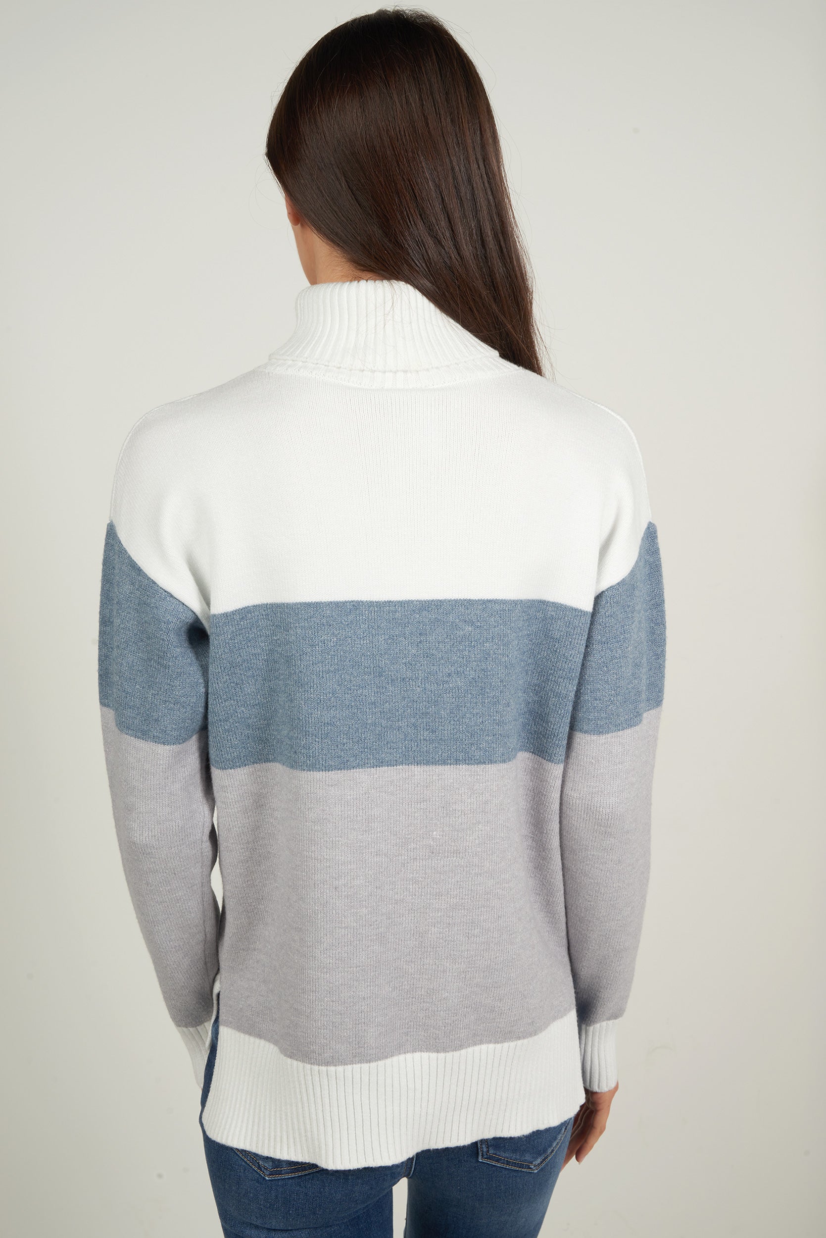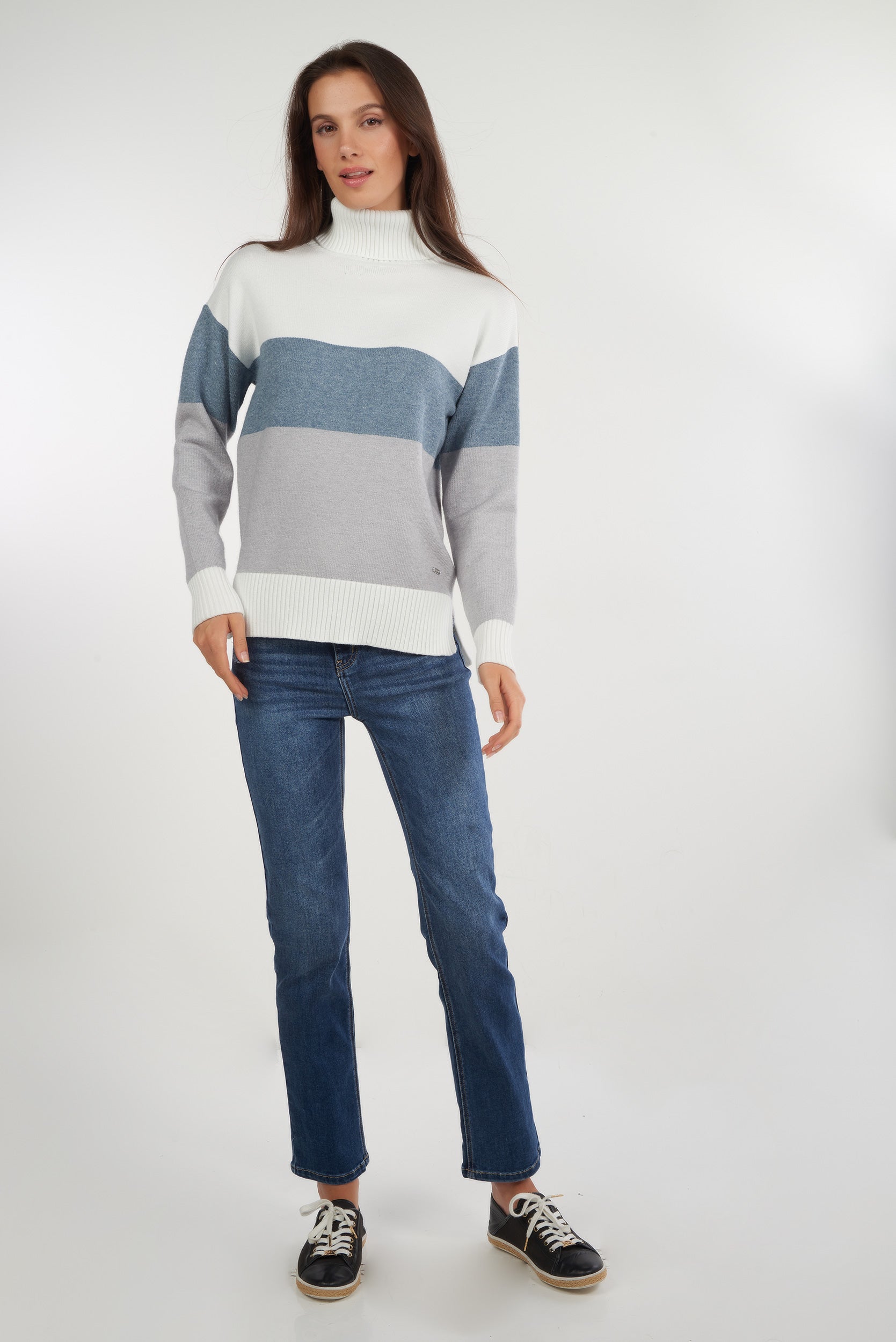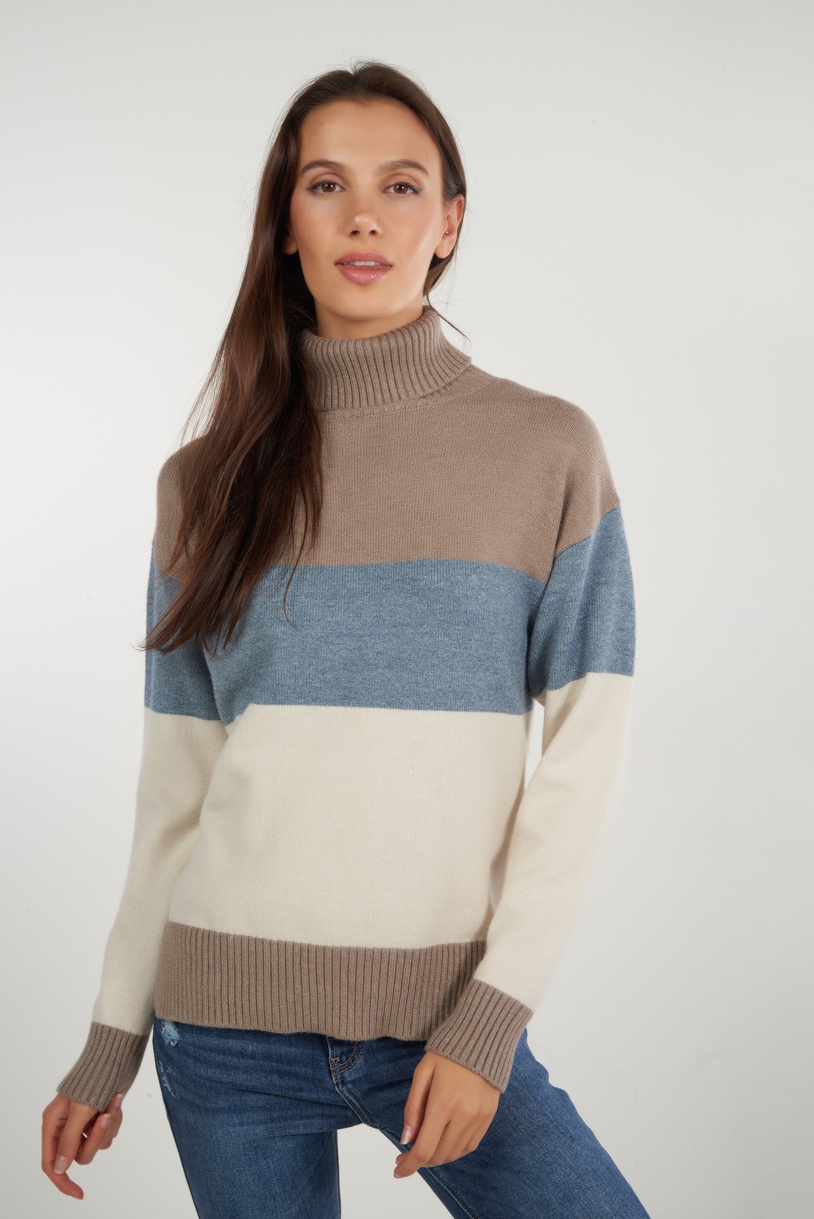 Chandail rayé à col montant - ANCOLIE-25 - (E-B9)