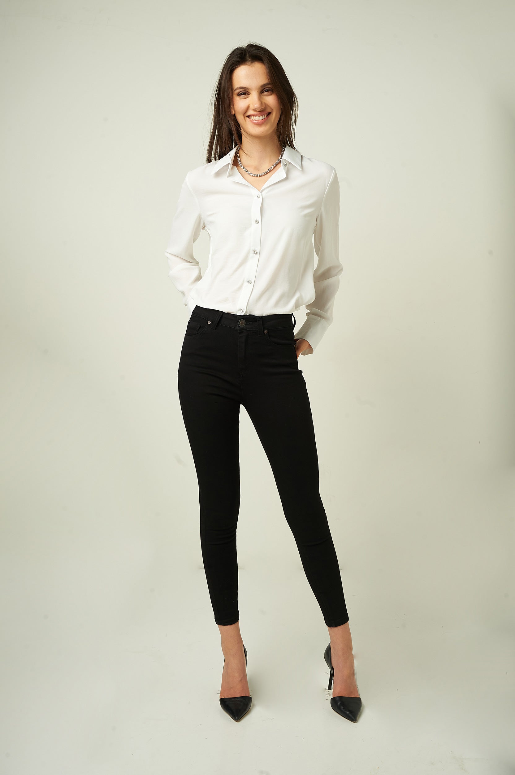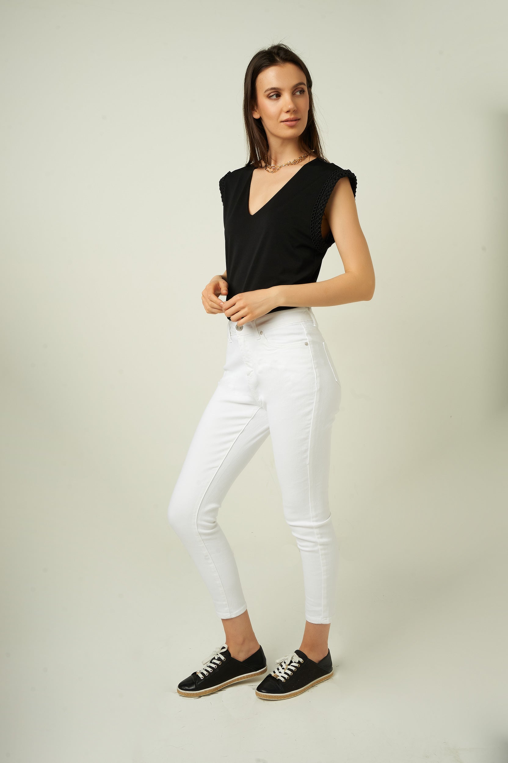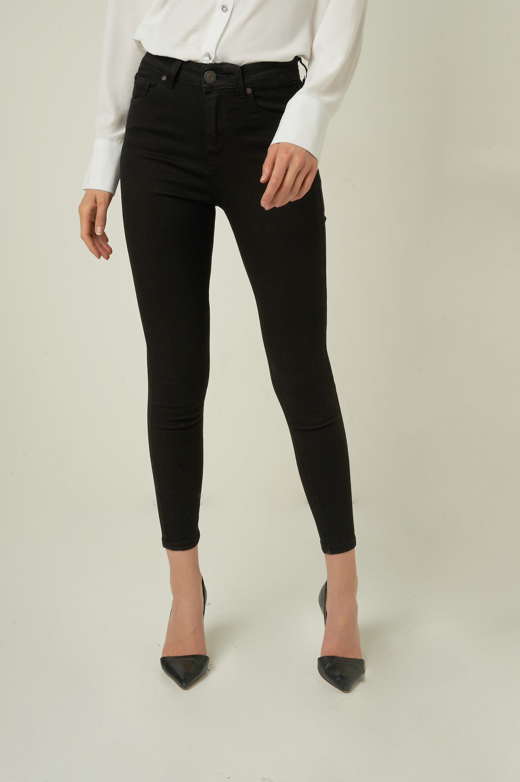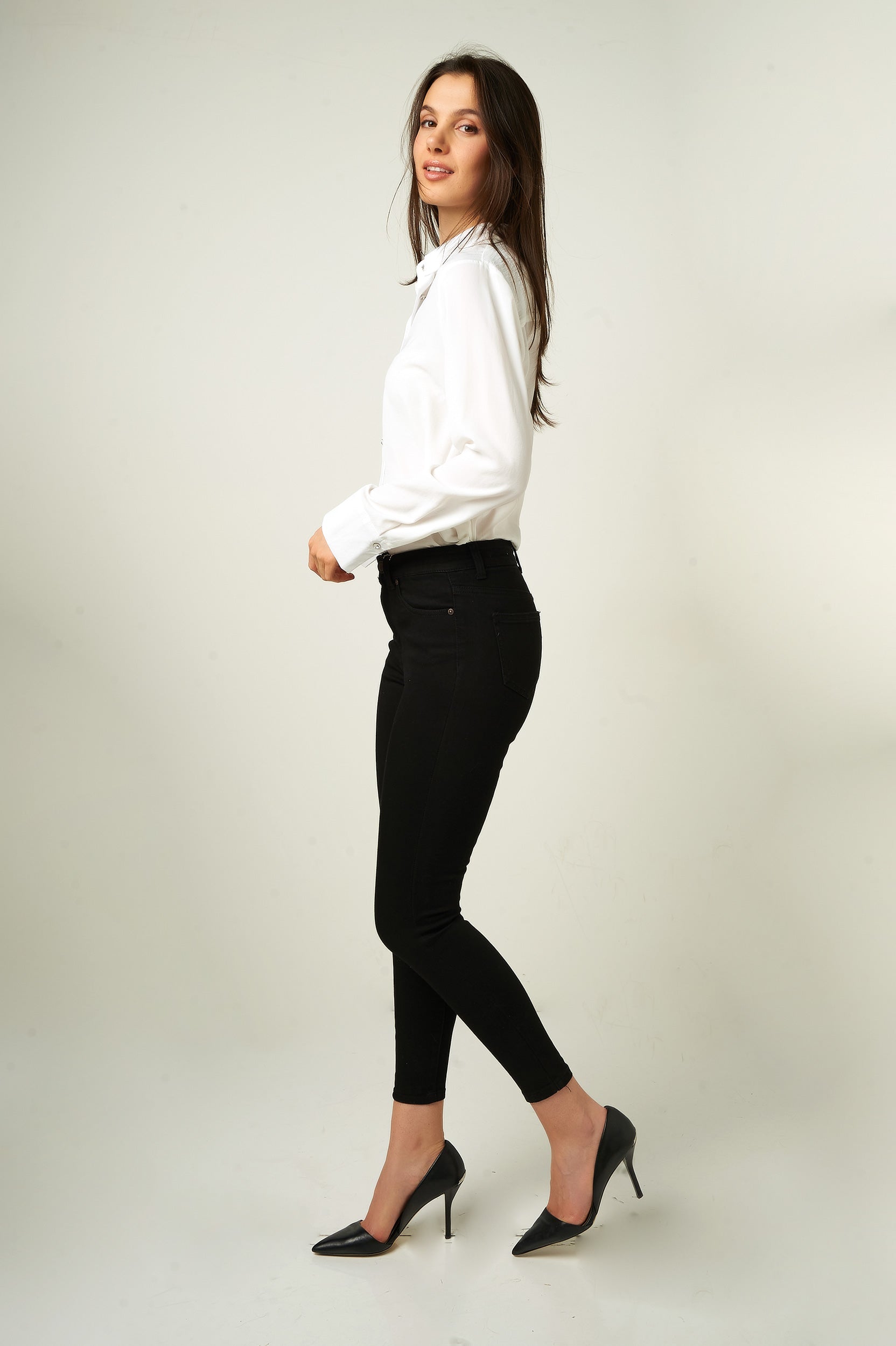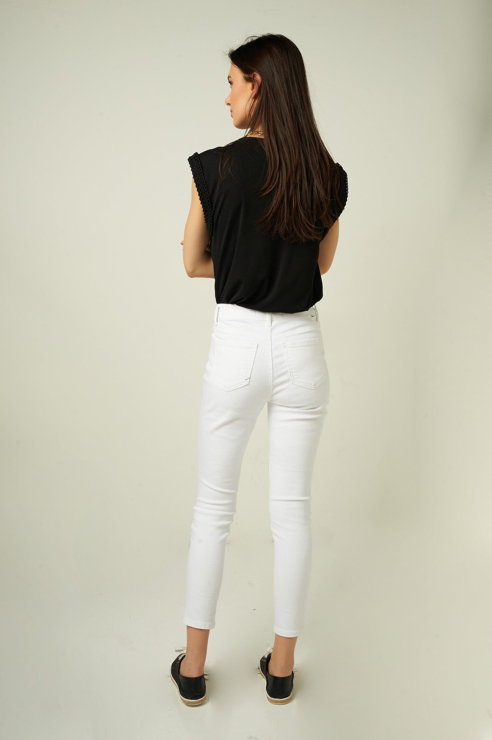 Magasinez nos jeans pour femmes, le pantalon en denim EP3035-Y. Sa coupe ajustée, son denim noir et denim blanc en font le pantalon skinny parfait pour un look tendance et confortable.
