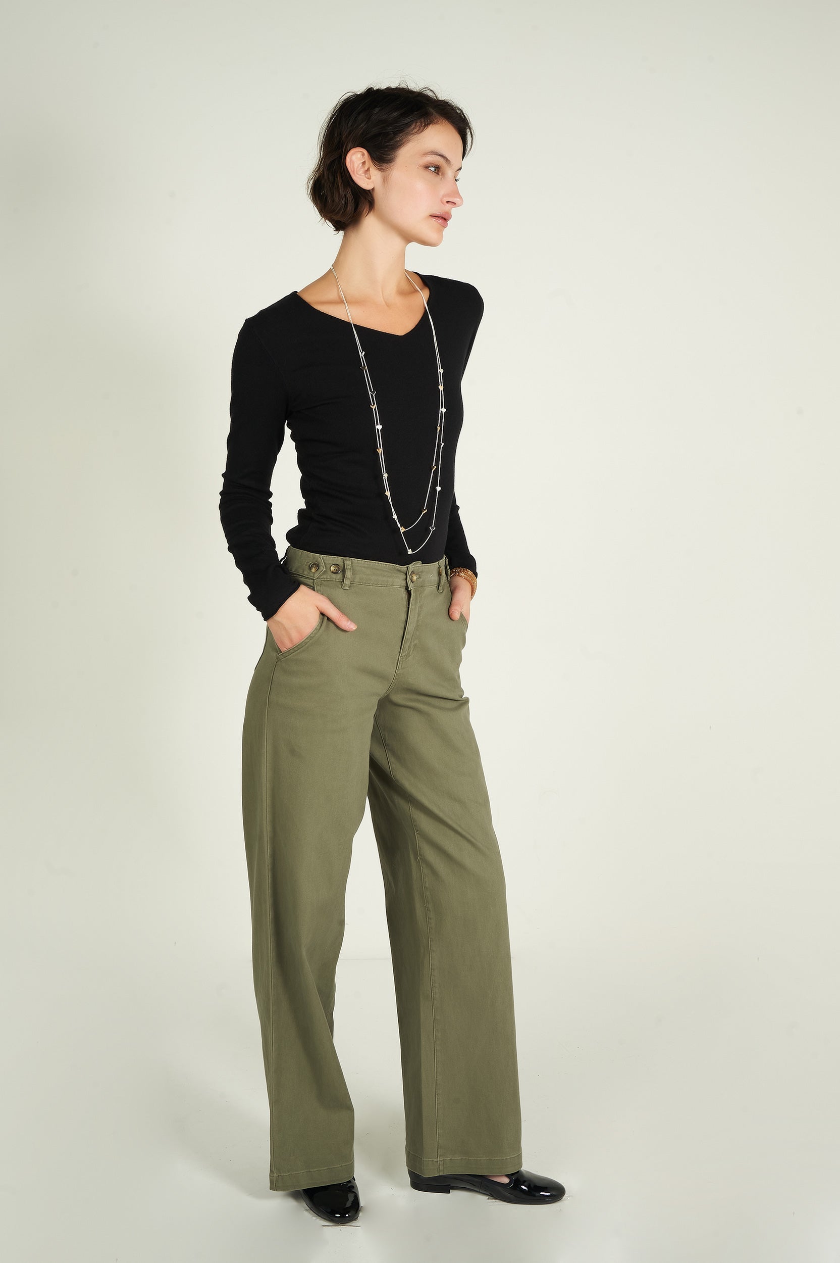 Préparez-vous à adorer nos pantalons pour femme, avec le jean pour femme CJ25581LK03. Ce jean ample, pantalon vert-khaki, se distingue par sa coupe large et vous offrira un look à la fois décontracté et moderne.