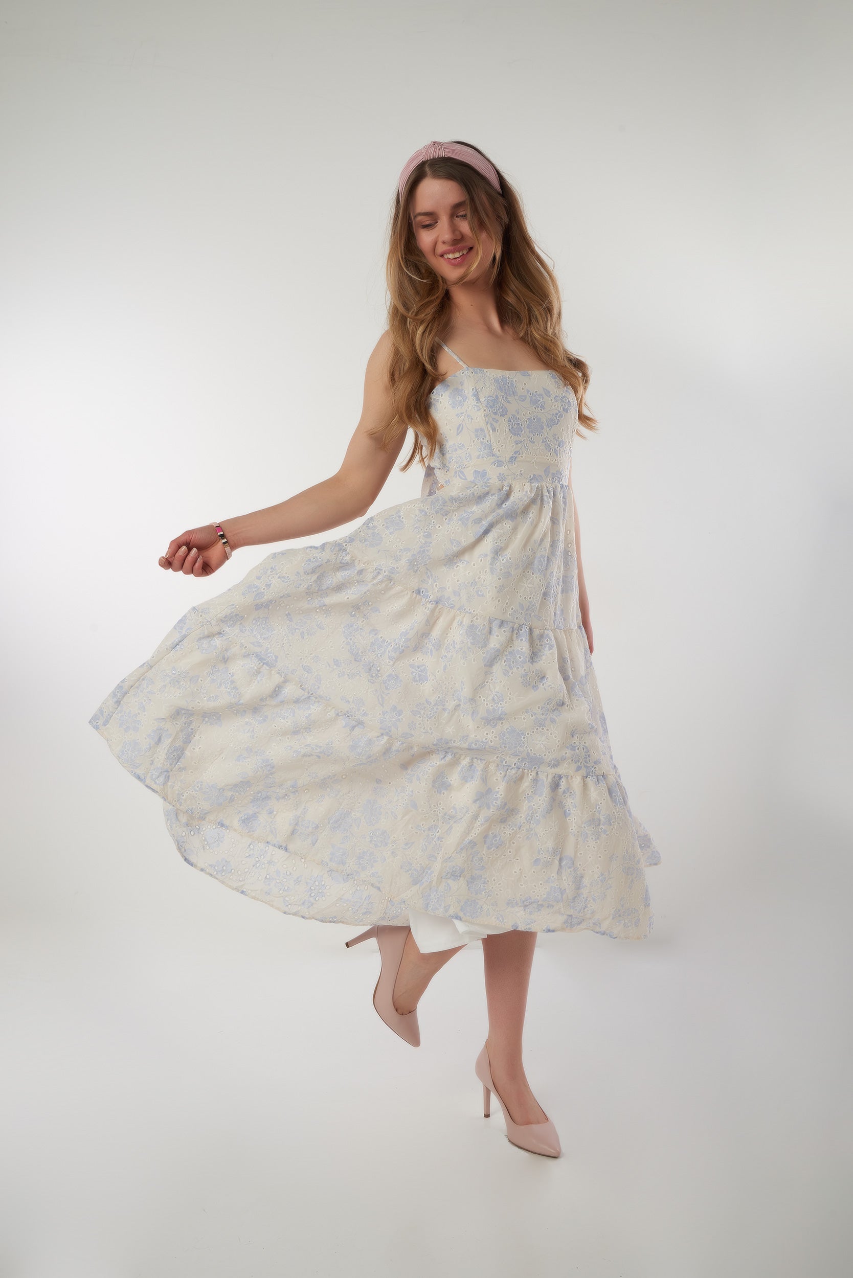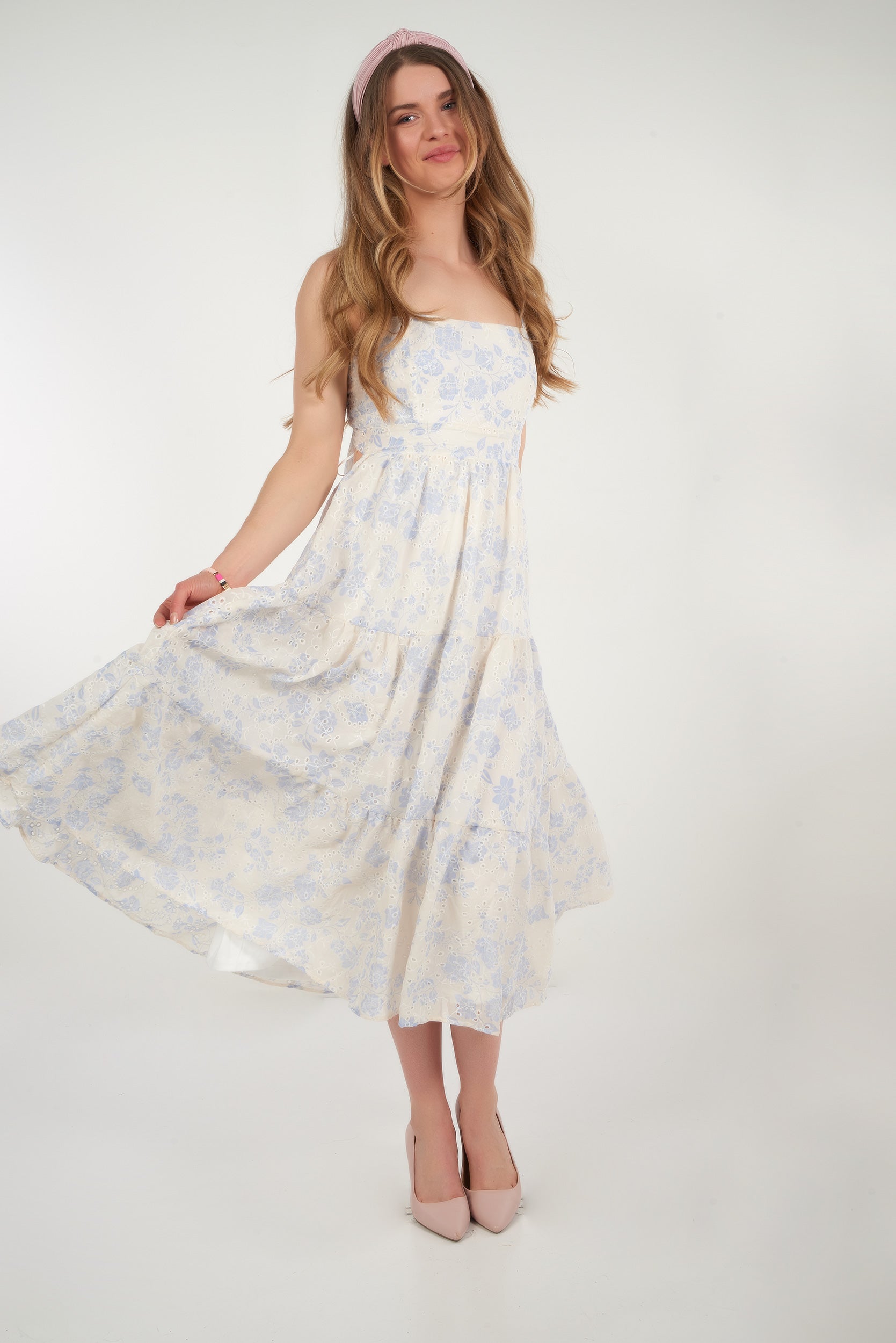 Cette robe longue fluide au motif fleuri pastel incarne parfaitement la douceur estivale et l’élégance naturelle. Sa coupe légère et ses volants délicats apportent un effet vaporeux et romantique à chaque mouvement. Le dos ouvert avec un joli nœud ajustable ajoute une touche de féminité irrésistible et raffinée.