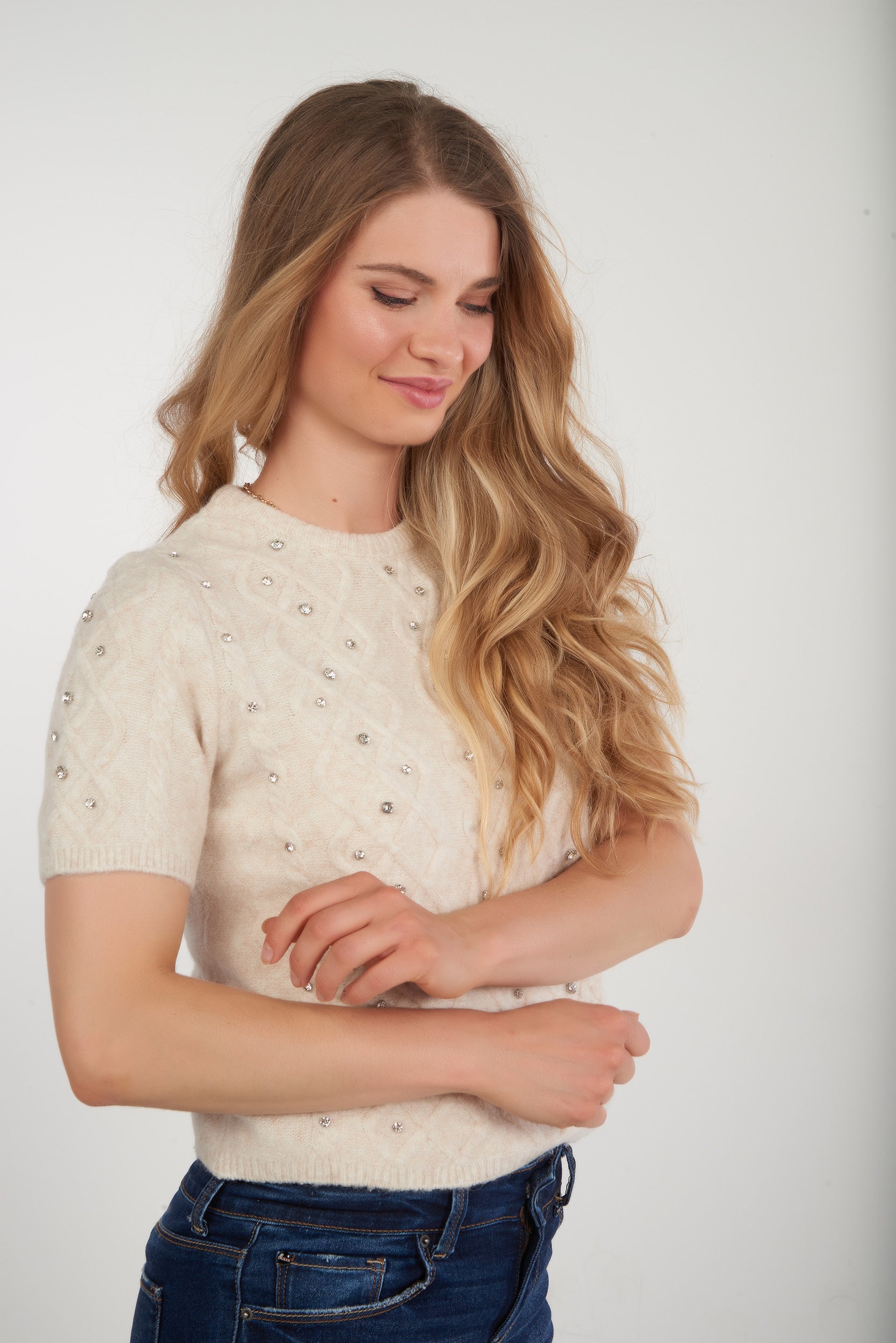 Chandail manches courtes avec pierres - AGUSTA - (E-B6)
