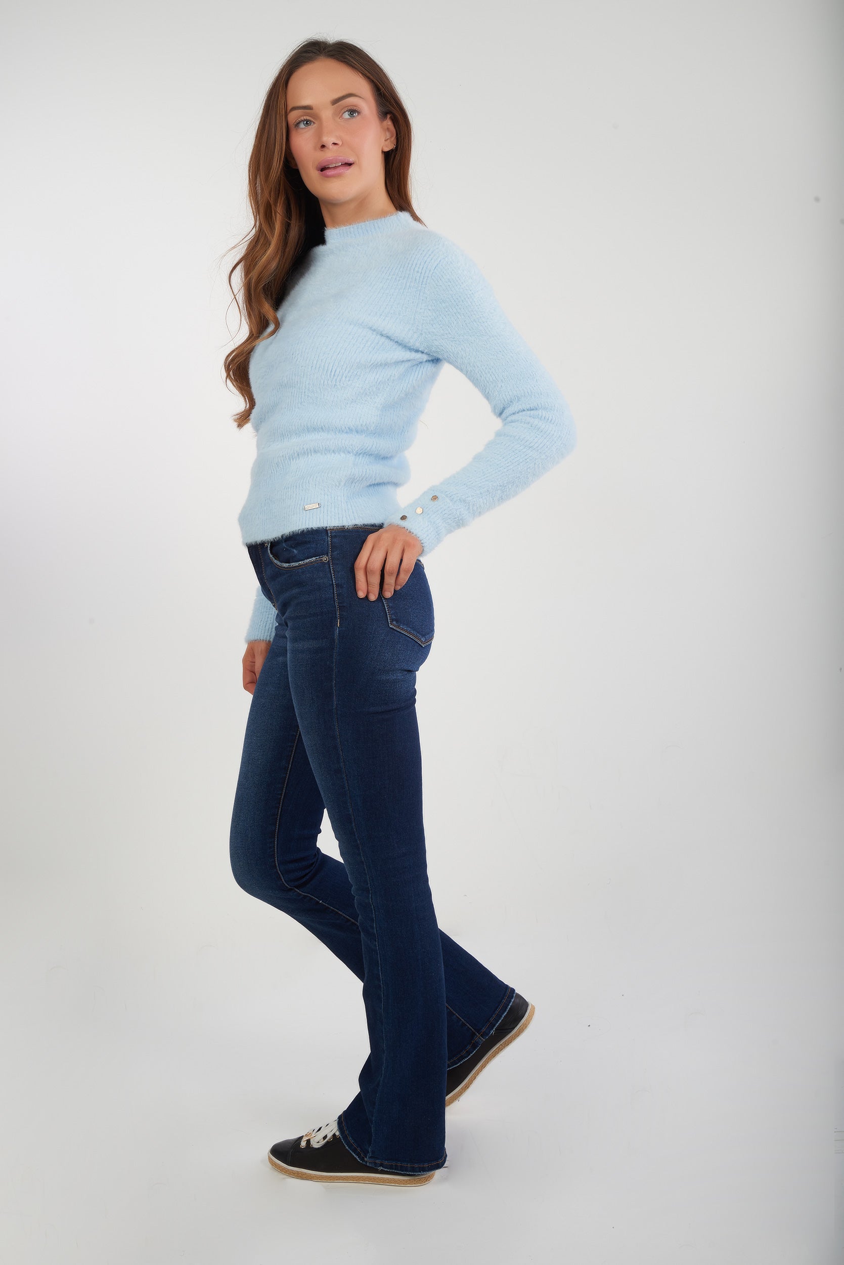 Découvrez notre collection de chandails pour femme et achetez le haut alliant style, confort et élégance : le tricot pour femme Cathy-Y2. Un haut qui deviendra votre essentiel préféré avec son col montant, sa texture duveteuse, ses bordures côtelées, ainsi que ses poignets repliés ajourés de boutons en or.