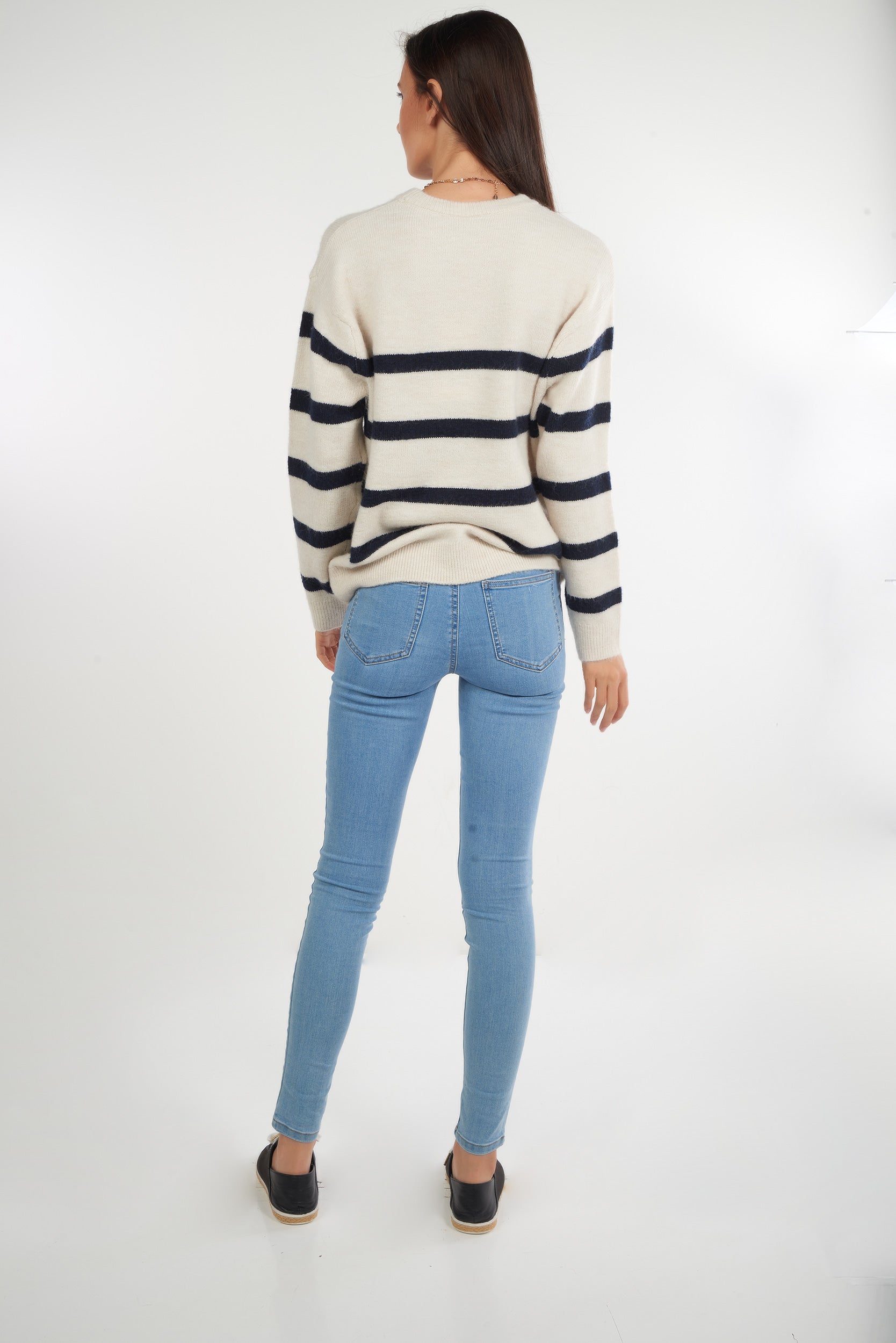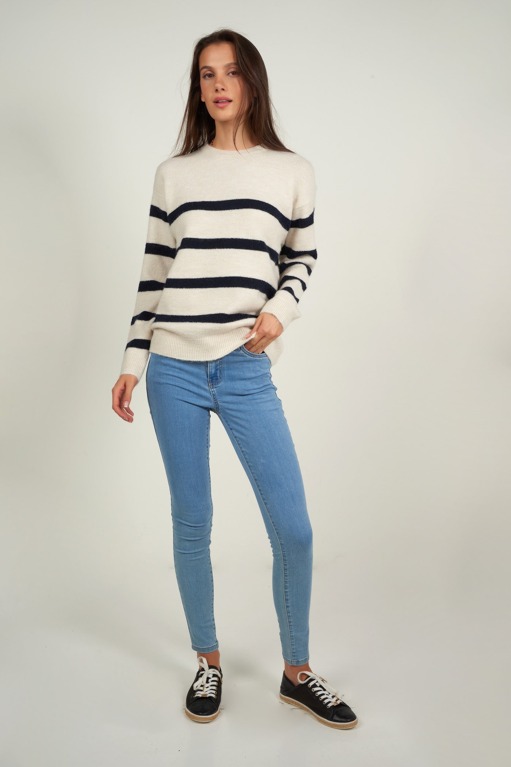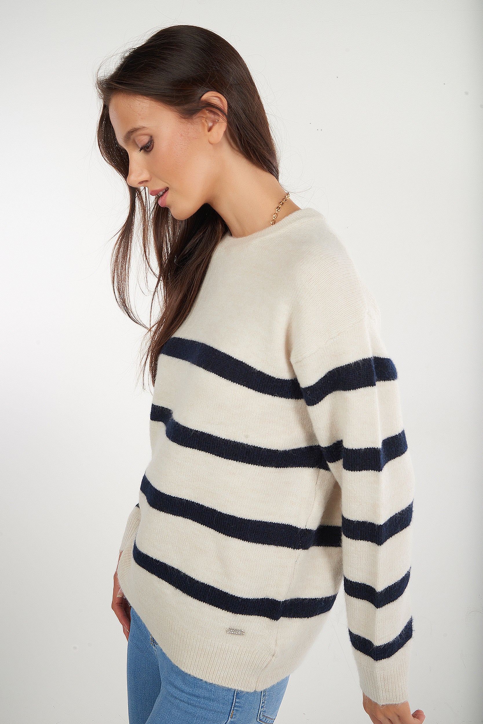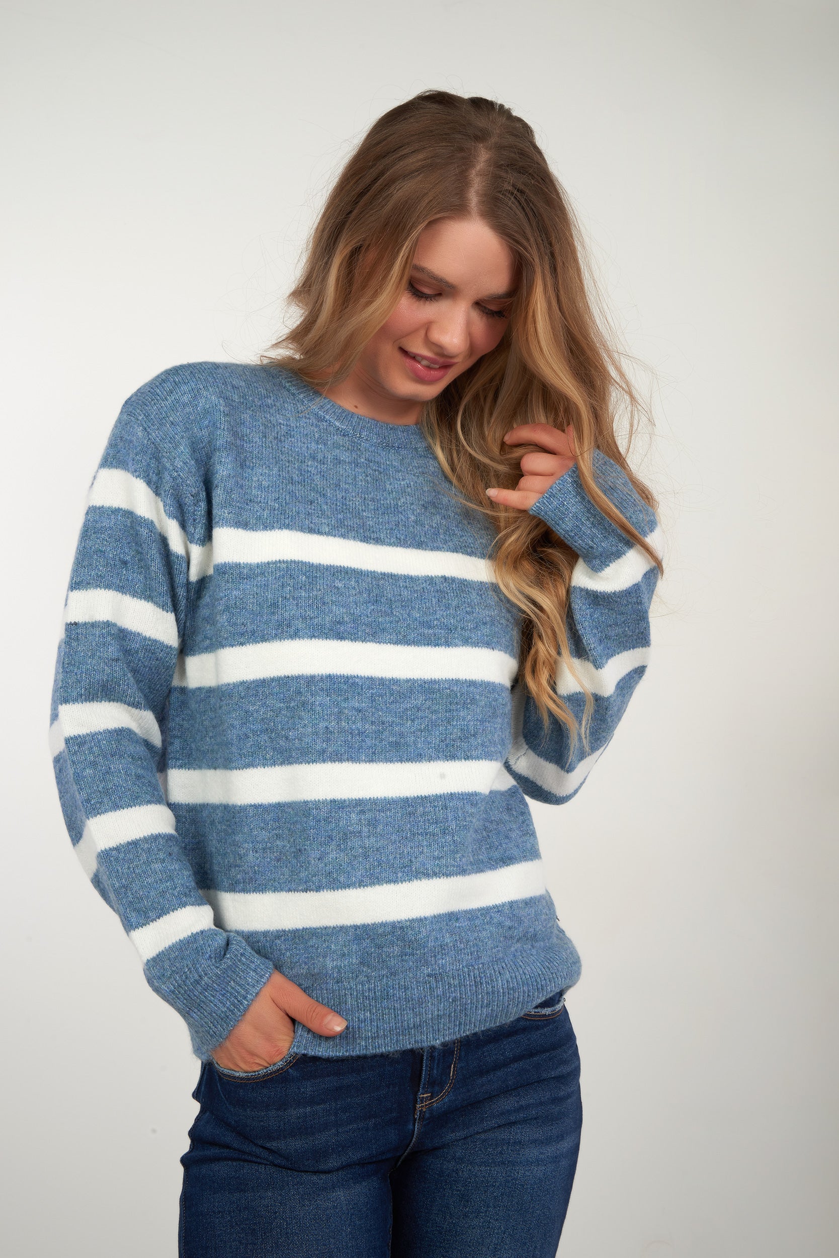 Chandail rayé à col rond - MAGGY - (E-B5)