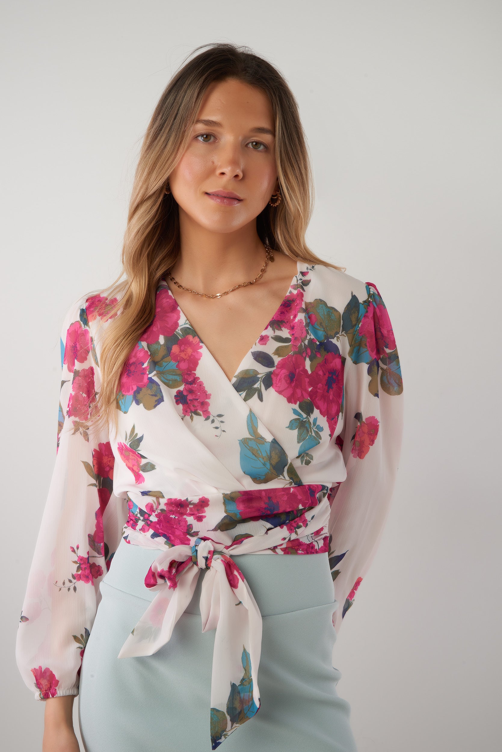 Ajoutez une touche féminine à votre garde-robe avec notre haut pour femme, le haut chic, Seki-2. Ce haut cache-coeur, haut écourté, séduit par son motif floral et son allure élégante parfaite pour l’été!