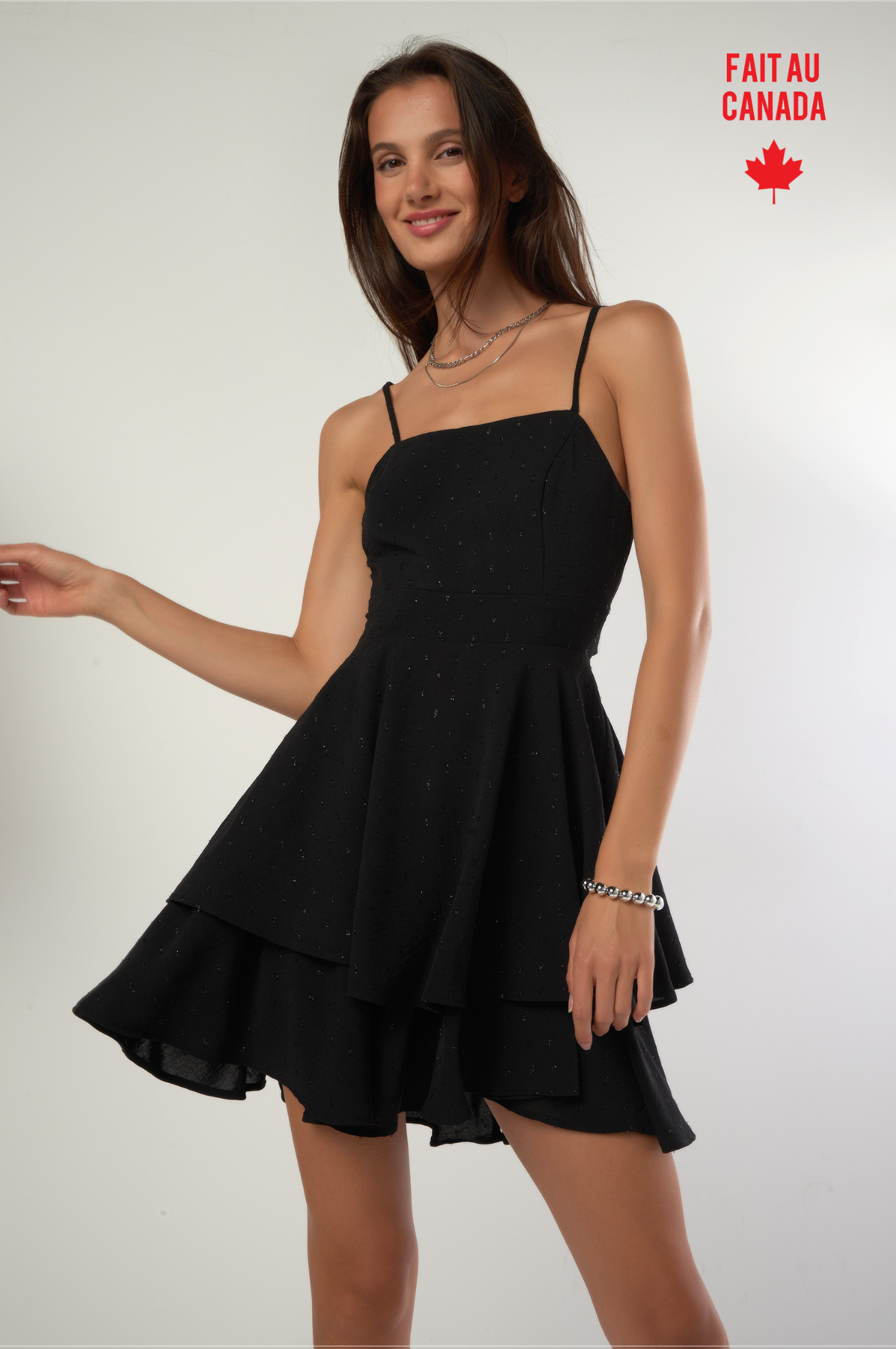 Découvrez notre collection de robes pour femmes, incluant la magnifique robe évasée Jamira-Clip, combinant élégance et confort. Son dos ouvert à nouer, ses fines bretelles, ses volants et ses pois texturés brillants sauront vous faire briller en toute confiance durant vos soirées festives.