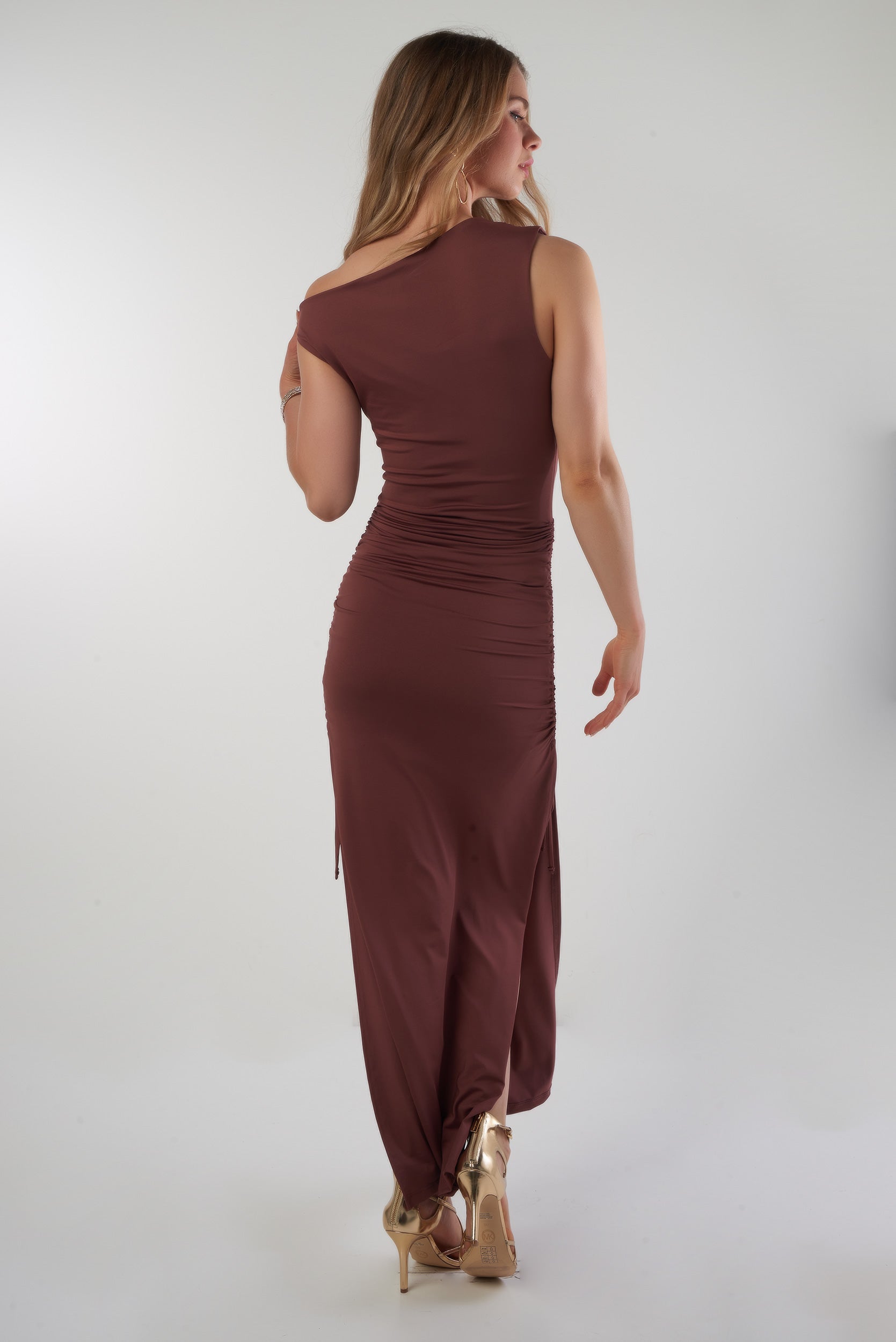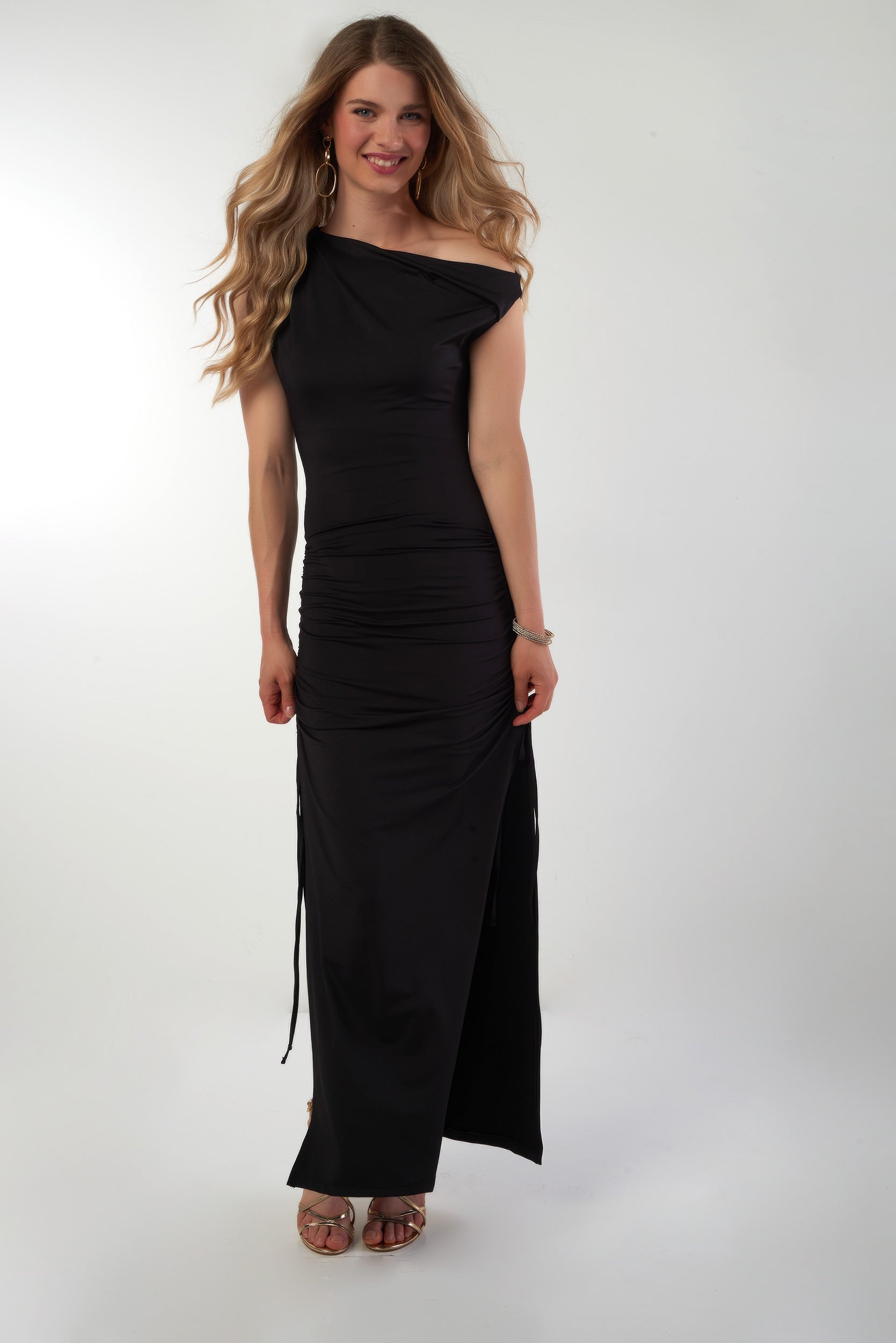 Sublimez vos looks avec nos robes pour femmes, dont le modèle DD4397. Cette robe maxi est dotée d'un haut asymétrique, ainsi que de fronces et fentes sur les côtés. Elle est parfaite pour les brunches entre amies ou les souper en famille.