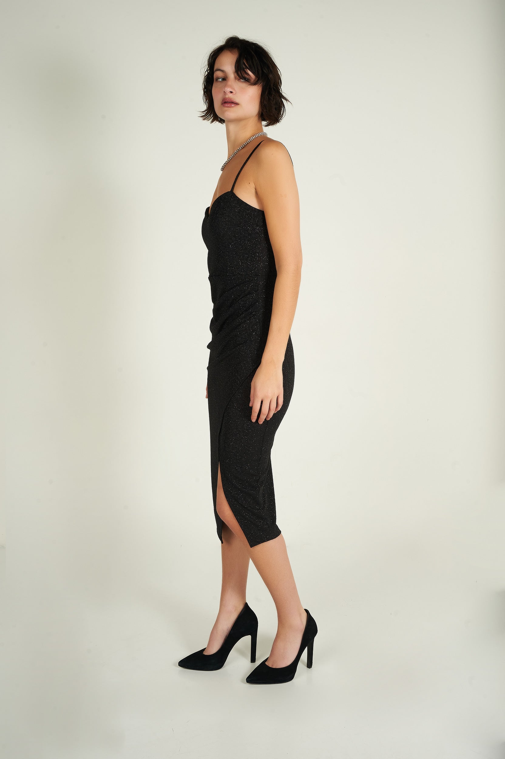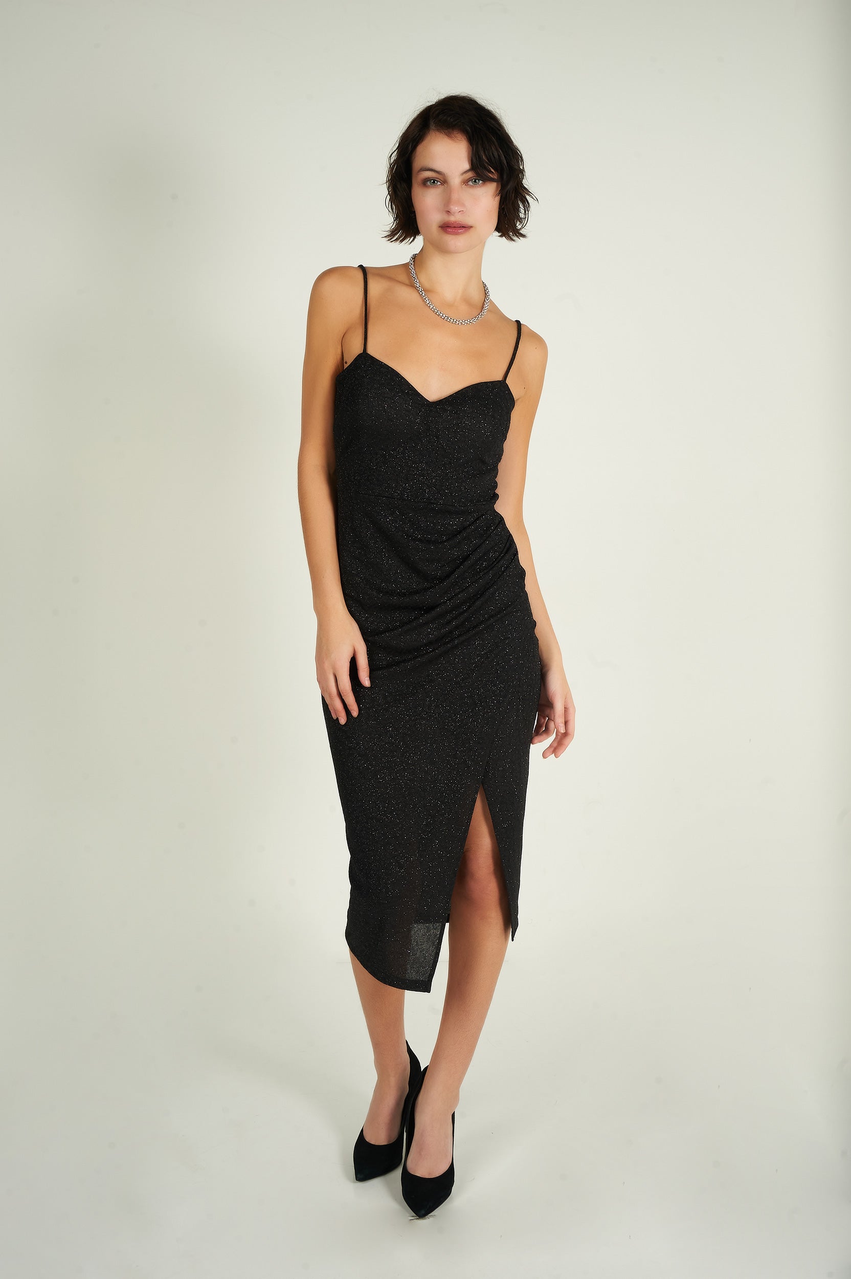 - Robe portefeuille brillante.