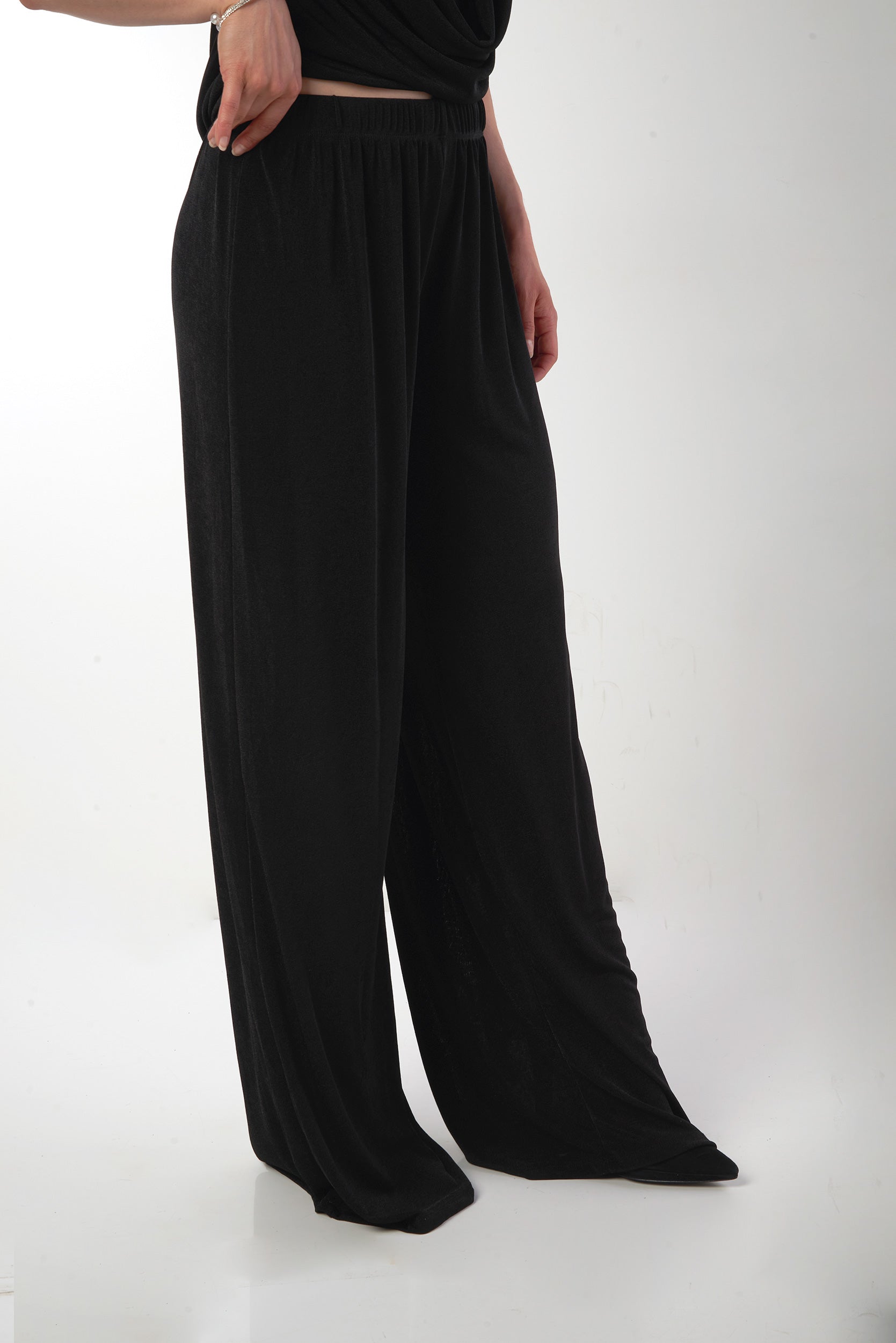 Découvrez notre élégant pantalon pour femme DP4385-P et ajoutez-le à votre garde-robe! Ce pantalon à enfiler, avec taille élastique et tissu brillant, est parfait pour créer des looks de soirée chics et confortables.