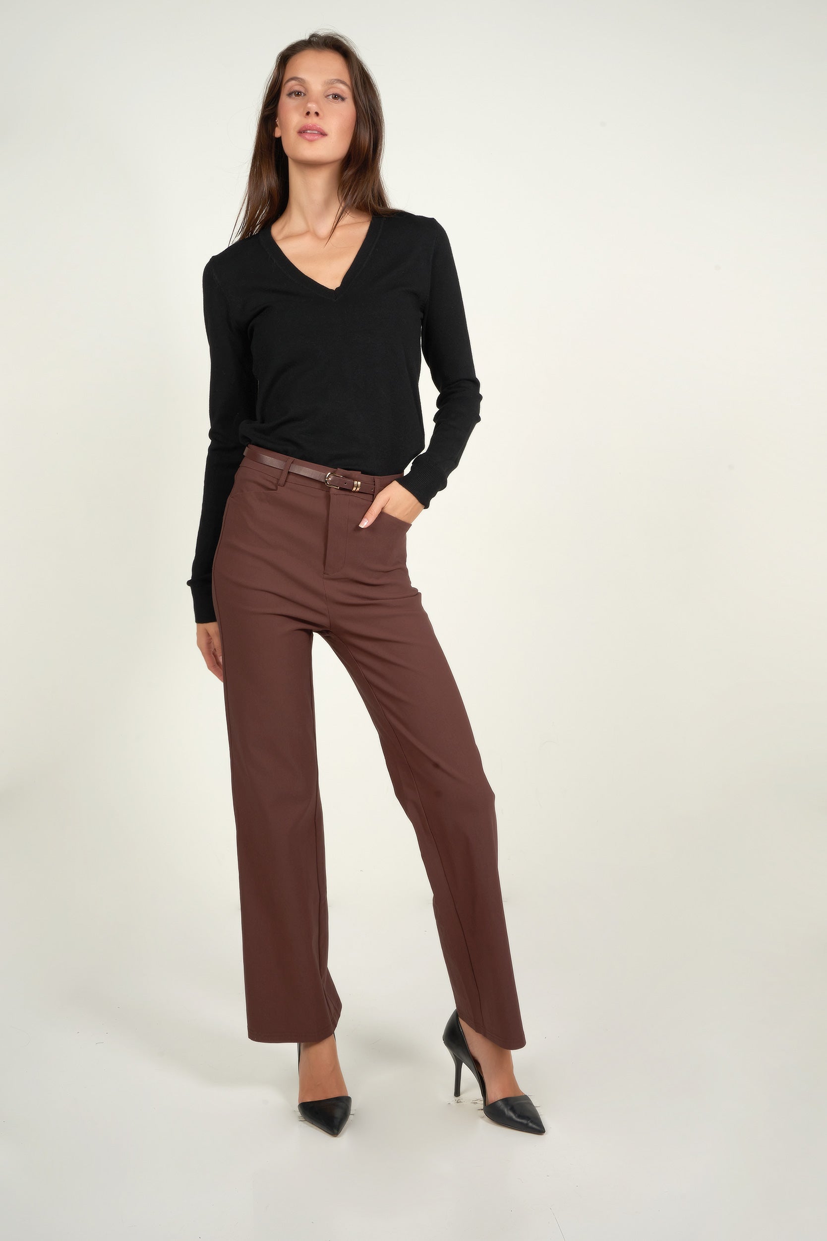 Pantalon jambe large avec ceinture - YP5078 - (E-C2)